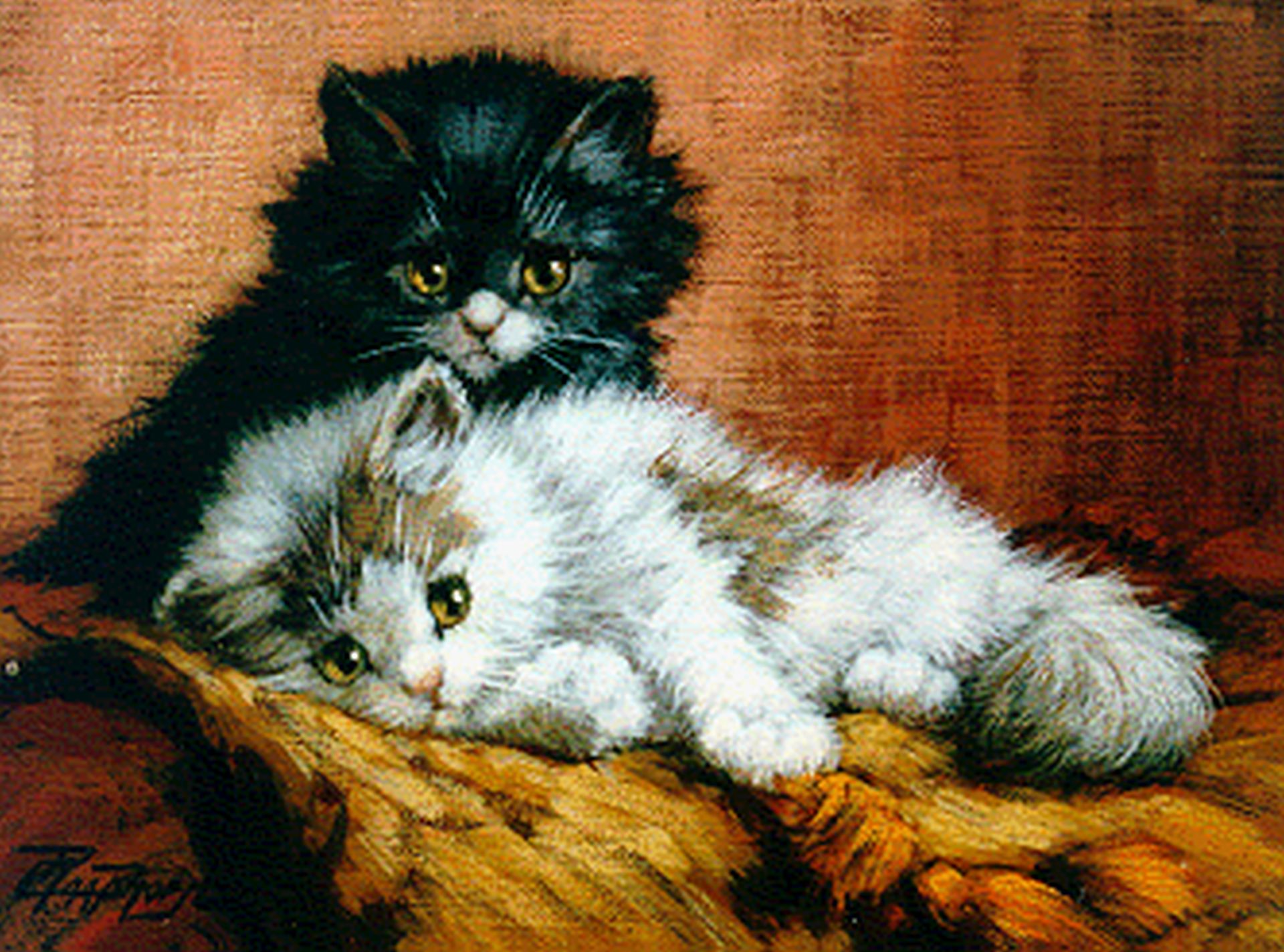 Cornelis Raaphorst Kunstwerk • Gemälde • zuvor zu verkaufen Two kittens