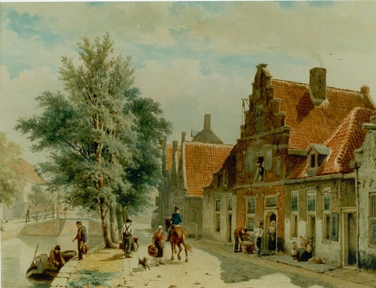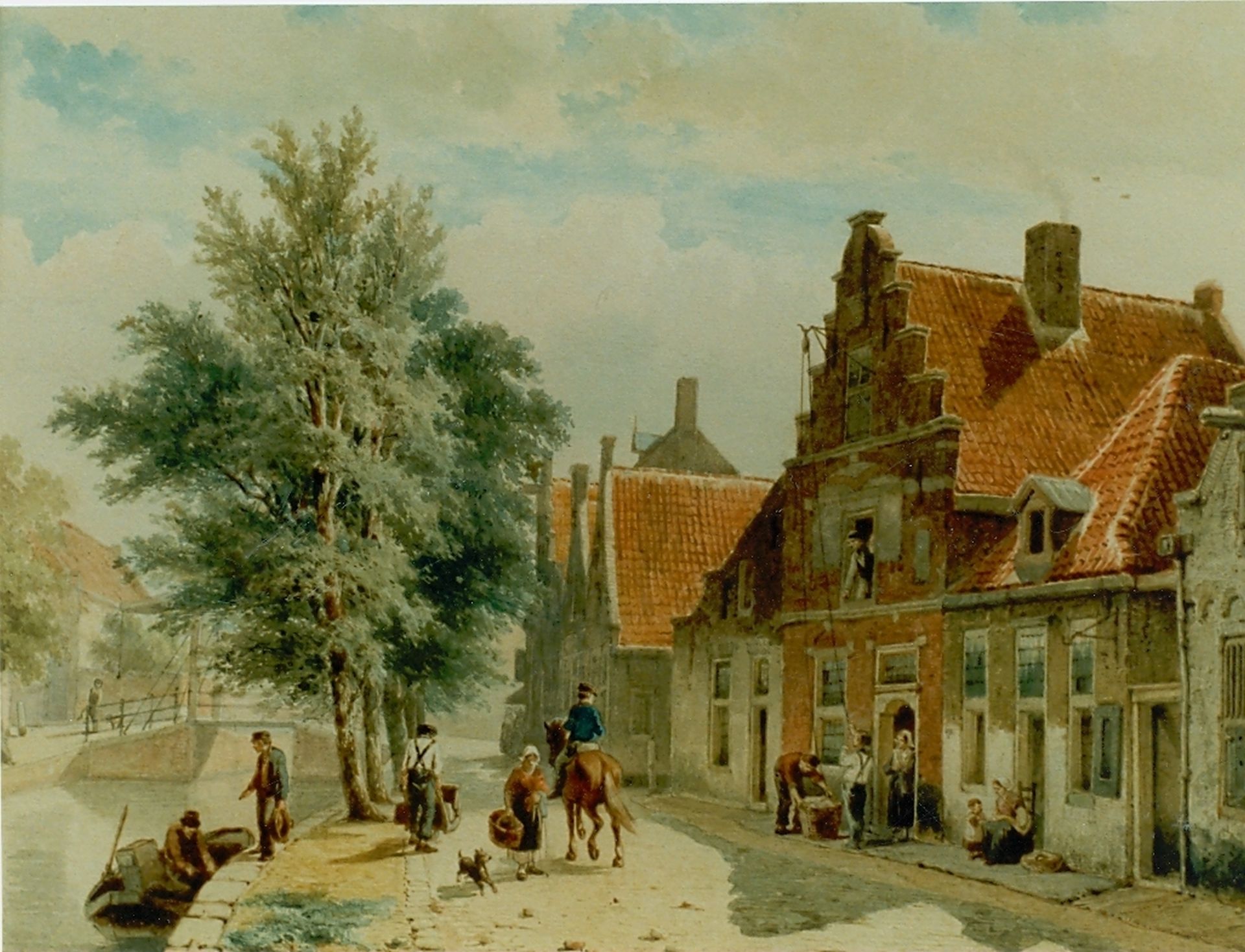 Cornelis Springer malte namentlich Stadt- und Dorfansichten, in denen Fassaden und lebhafte Ausstattung baden im warmen Sonnenlicht. Zusammen mit Barend Cornelis Koekkoek und Andreas Schelfhout gehört er zu den wichtigsten Malern der holländischen Romantik. In seinen Gemälden ist oft den Gebäuden aus dem 17. und 18. Jahrhundert eine prominente Stelle zugeteilt. Manchmal is das eine Phantasie-Architektur, aber in den meisten Fällen waren es realen Gebäude, worin man um 1850 die Schönheit „wiederentdeckte“. Springer machte von diesen Gebäuden zunächst eine ausführliche Skizze, die er dann nachher zum Gemälde ausarbeitete.