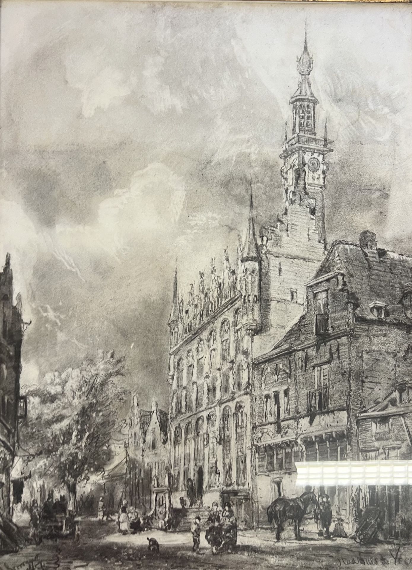 Cornelis Springer Kunstwerk • Aquarell • Zeichnung • zu verkaufen Rathaus in Veere