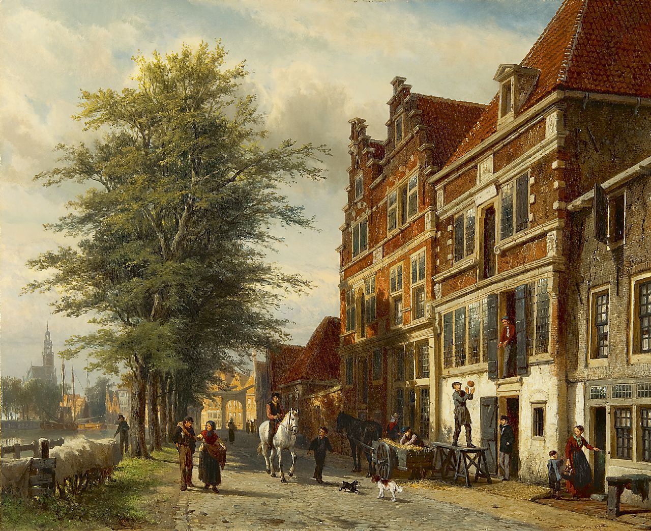 Cornelis Springer Kunstwerk • Gemälde • zuvor zu verkaufen Die Doelenkade in Hoorn, im Sommer