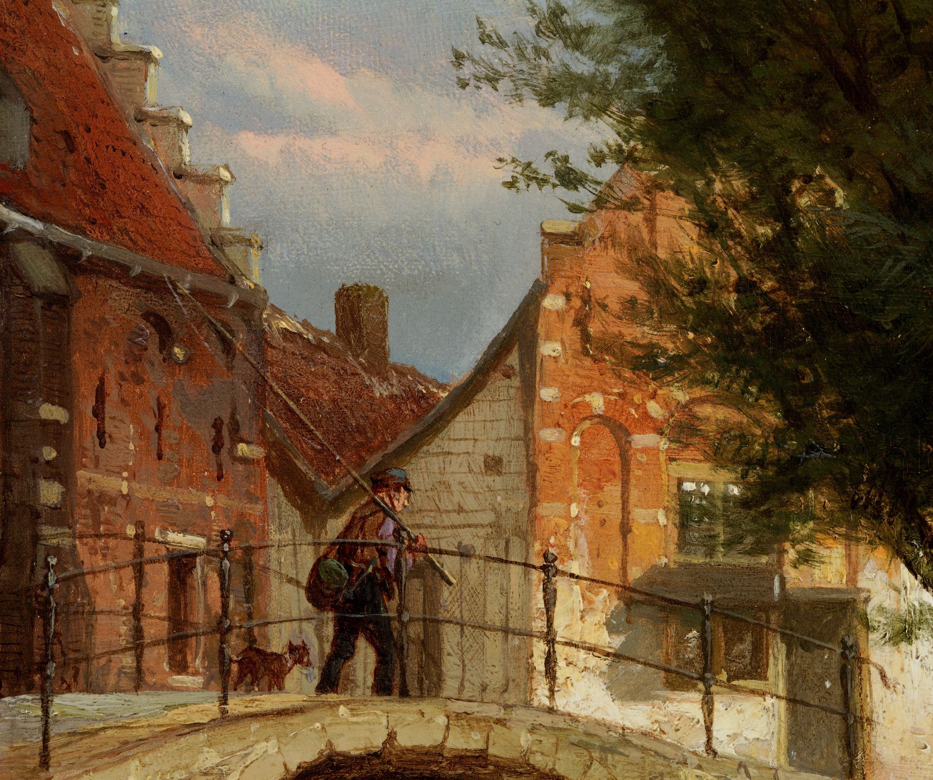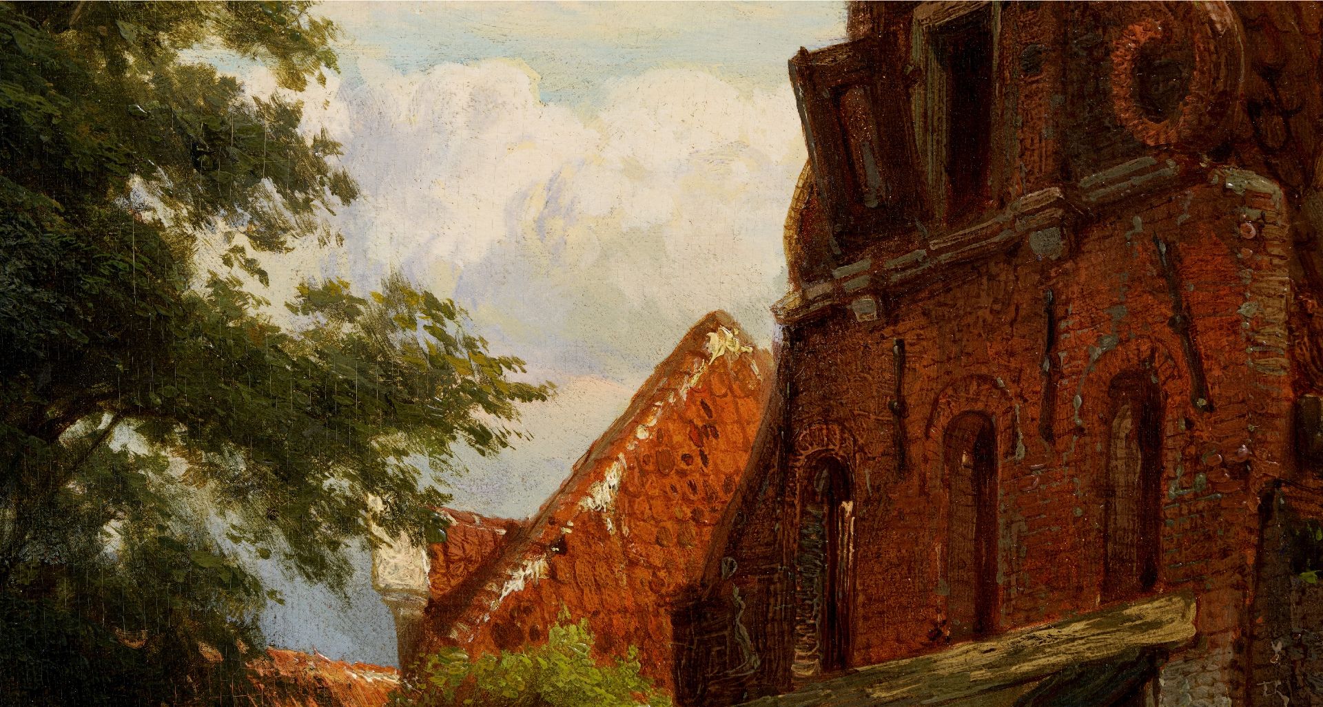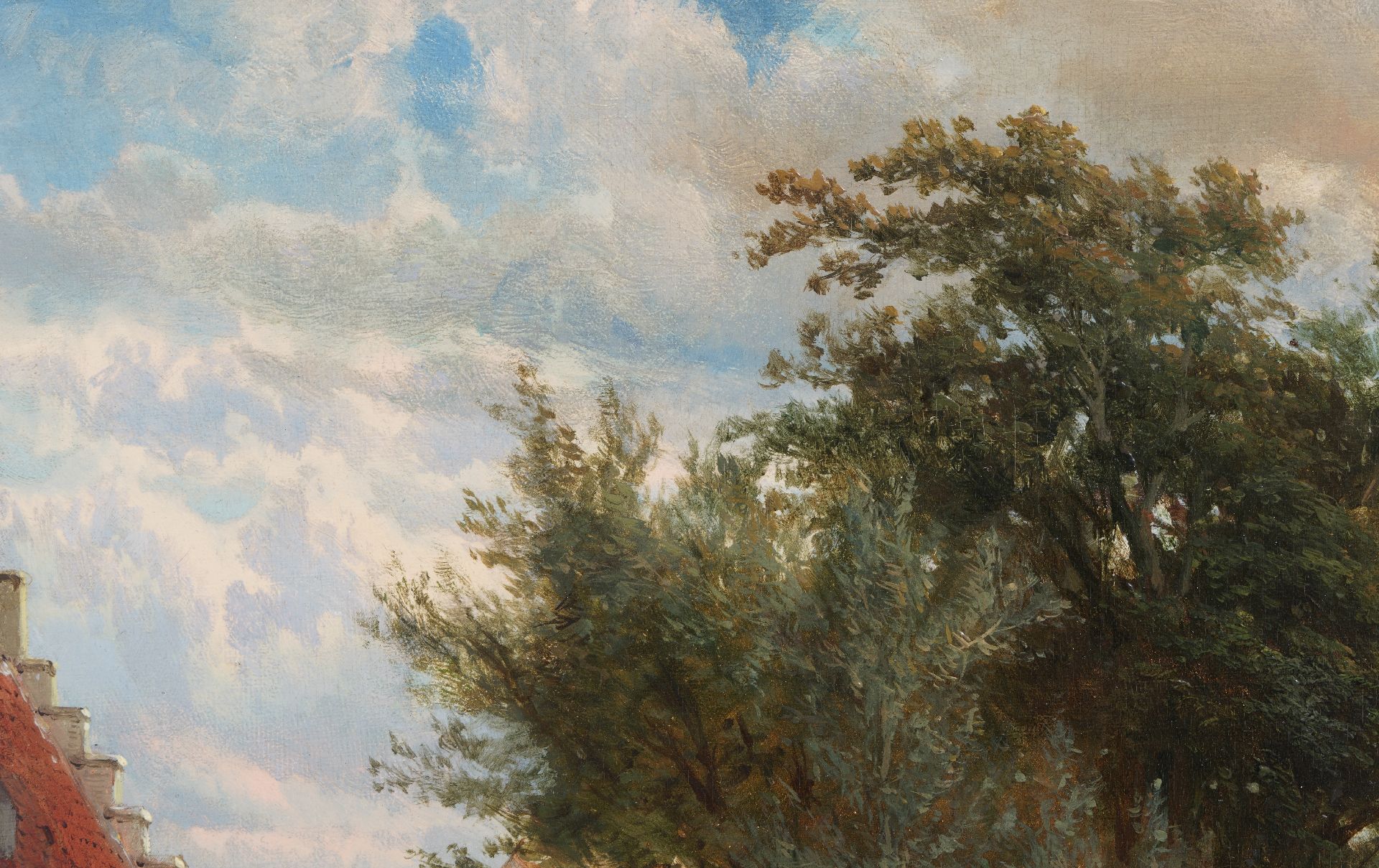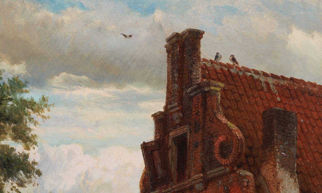 Cornelis Springer malte namentlich Stadt- und Dorfansichten, in denen Fassaden und lebhafte Ausstattung baden im warmen Sonnenlicht. Zusammen mit Barend Cornelis Koekkoek und Andreas Schelfhout gehört er zu den wichtigsten Malern der holländischen Romantik. In seinen Gemälden ist oft den Gebäuden aus dem 17. und 18. Jahrhundert eine prominente Stelle zugeteilt. Manchmal is das eine Phantasie-Architektur, aber in den meisten Fällen waren es realen Gebäude, worin man um 1850 die Schönheit „wiederentdeckte“. Springer machte von diesen Gebäuden zunächst eine ausführliche Skizze, die er dann nachher zum Gemälde ausarbeitete.