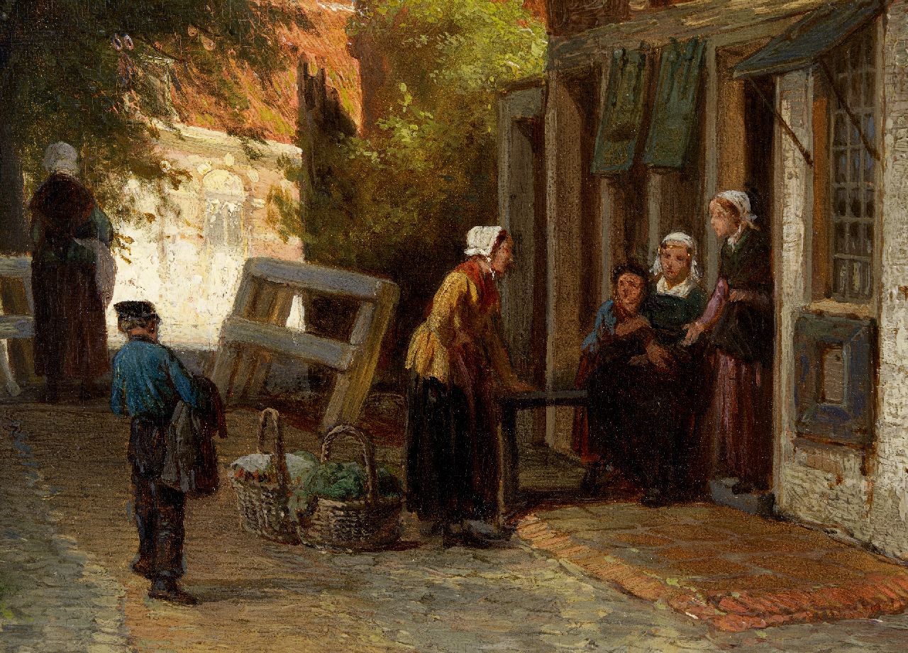 Cornelis Springer Kunstwerk • Gemälde • zu verkaufen Hinter die Drie Banen, Enkhuizen