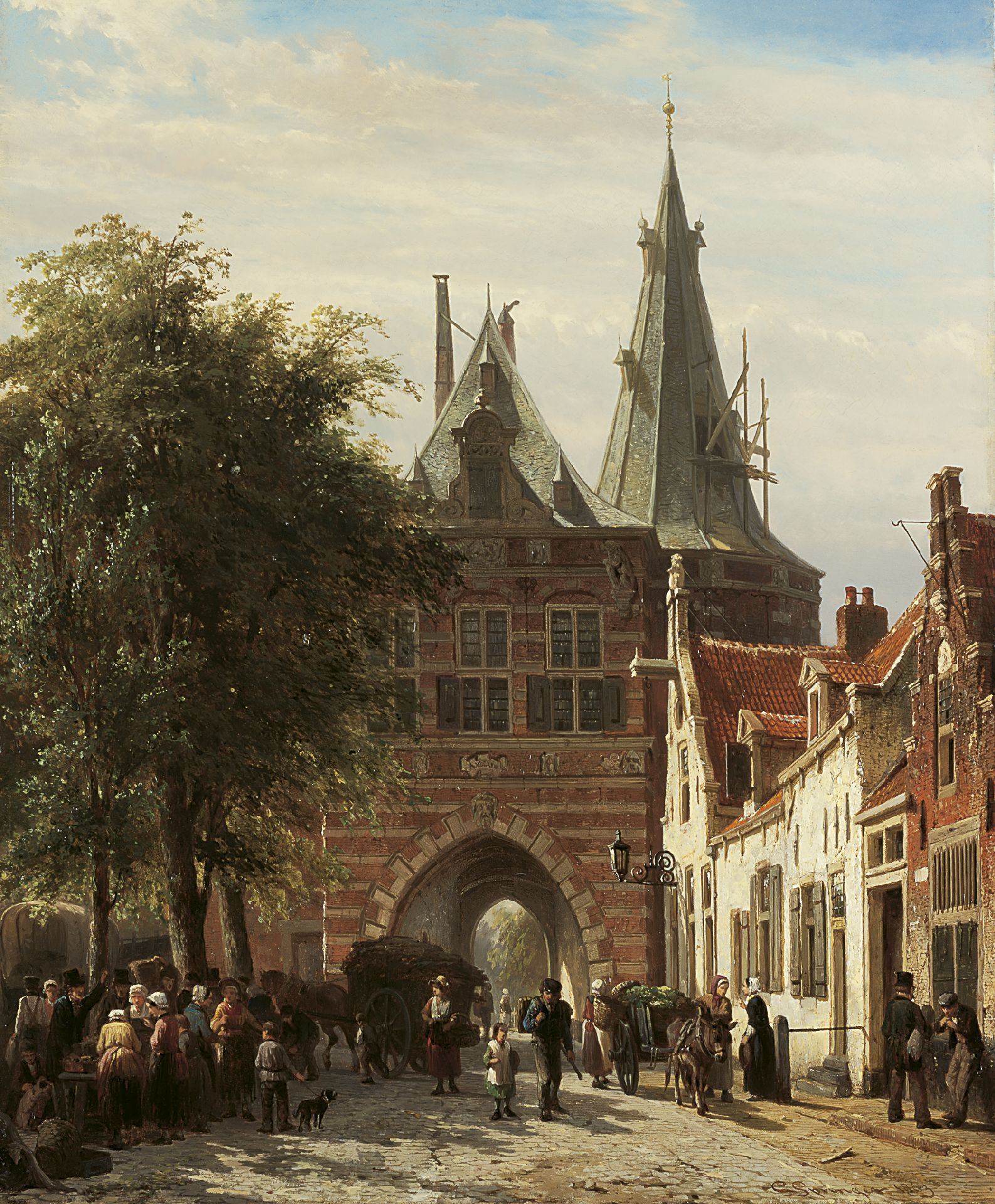 Cornelis Springer Kunstwerk • Gemälde • zuvor zu verkaufen A view of the Cellebroederspoort, Kampen
