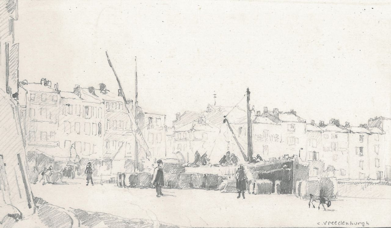 Cornelis Vreedenburgh war grösstenteils Autodidakt. Anfangs arbeitete er als Anstreicher und zeichnete und malte in seiner Freizeit, bis er sich 1904 mittels einer königlichen Subvention völlig der Malerei widmen konnte. Er hatte viel Vorteil von den Ratschlägen von W.B.Tholen, der ihn oft auf seinem Boot mitnahm auf dem Kaag und den Loosdrechtse Plassen. Die Weiden- und Wasserszenen, die Vreedenburgh malte waren sofort sehr beliebt durch ihre starken Farben und die treffende Weise wie er das Licht und die Atmosphere der holländischen Landschaft wiedergeben konnte. 1917liess der Maler sich in Laren nieder. Von der Zeit ab entstanden auch viele Amsterdamer Stadtansichten.
