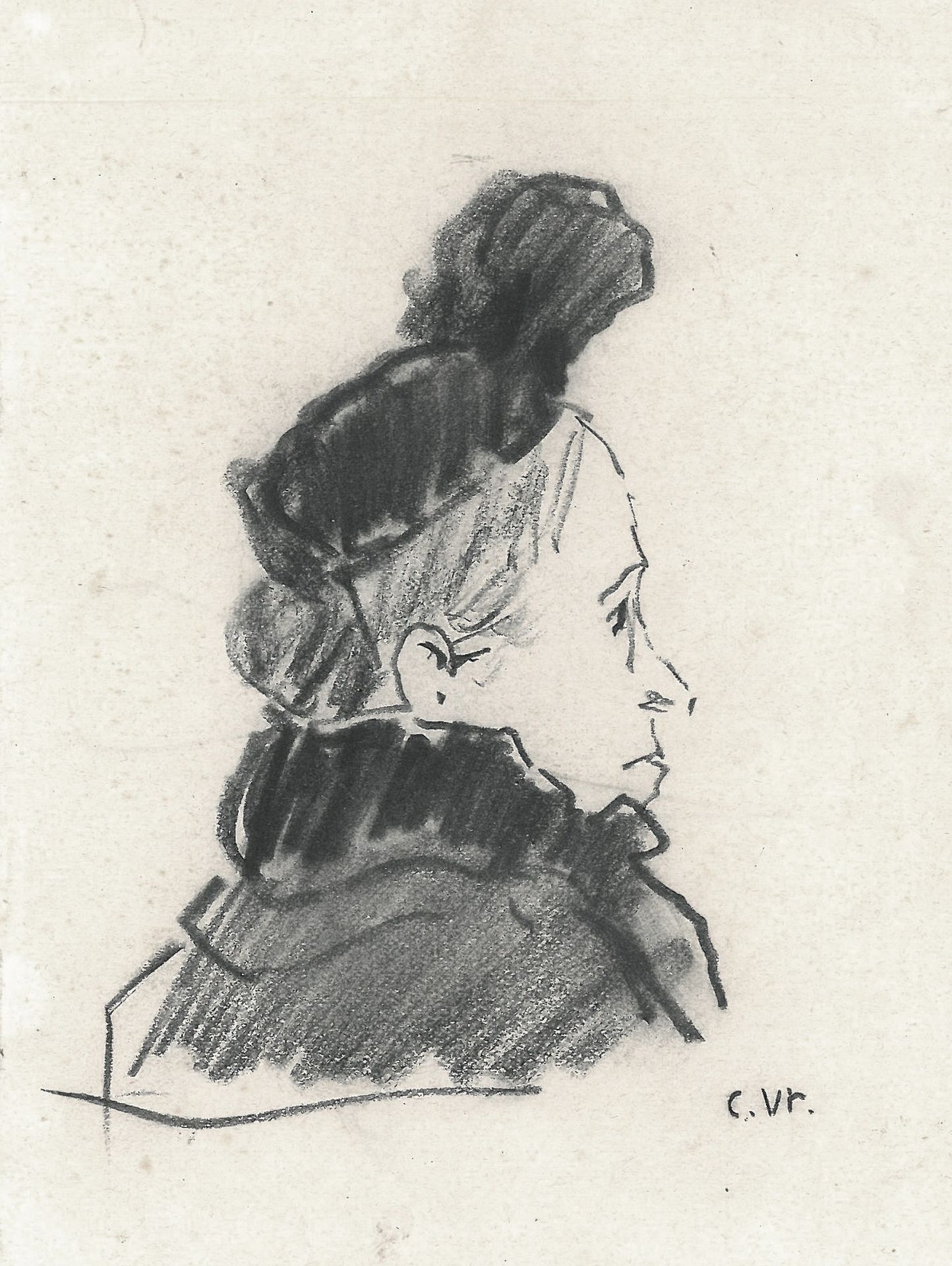 Cornelis Vreedenburgh Kunstwerk • Aquarell • Zeichnung • zu verkaufen Studie einer Frau mit modischem Hut