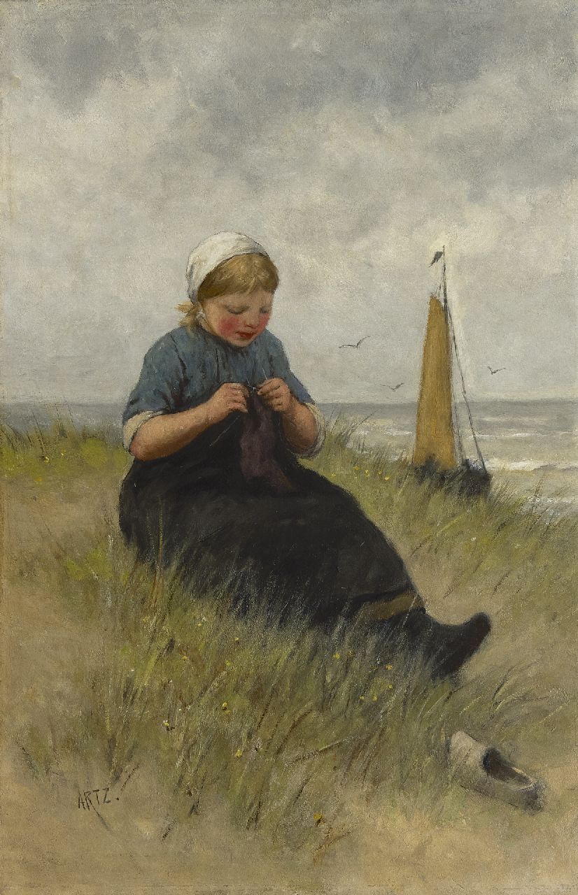 Der Haager Schulmaler D.A.C. Artz war schon zu seiner Zeit für seine schönen, sensibel gemalten Darstellungen des Fischerlebens in Scheveningen berühmt. Bei seiner Wahl für dieses Genre wurde er stark von Jozef Israels beeinflusst, mit dem er sich als junger Maler angefreundet hatte. Stilistisch war er jedoch kein Anhänger von Israels. Seine Malweise ist weniger atmosphärisch, viel schärfer in der Zeichnung und viel präziser in Details.