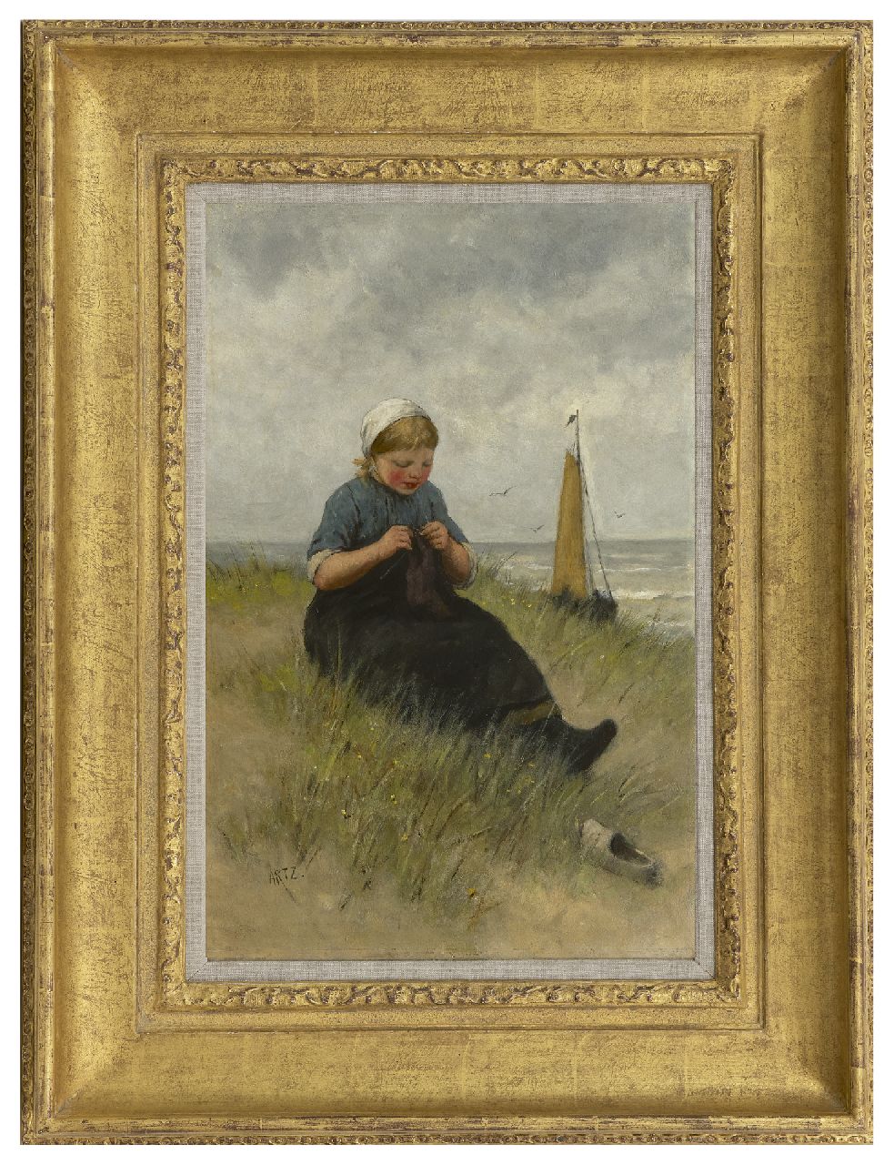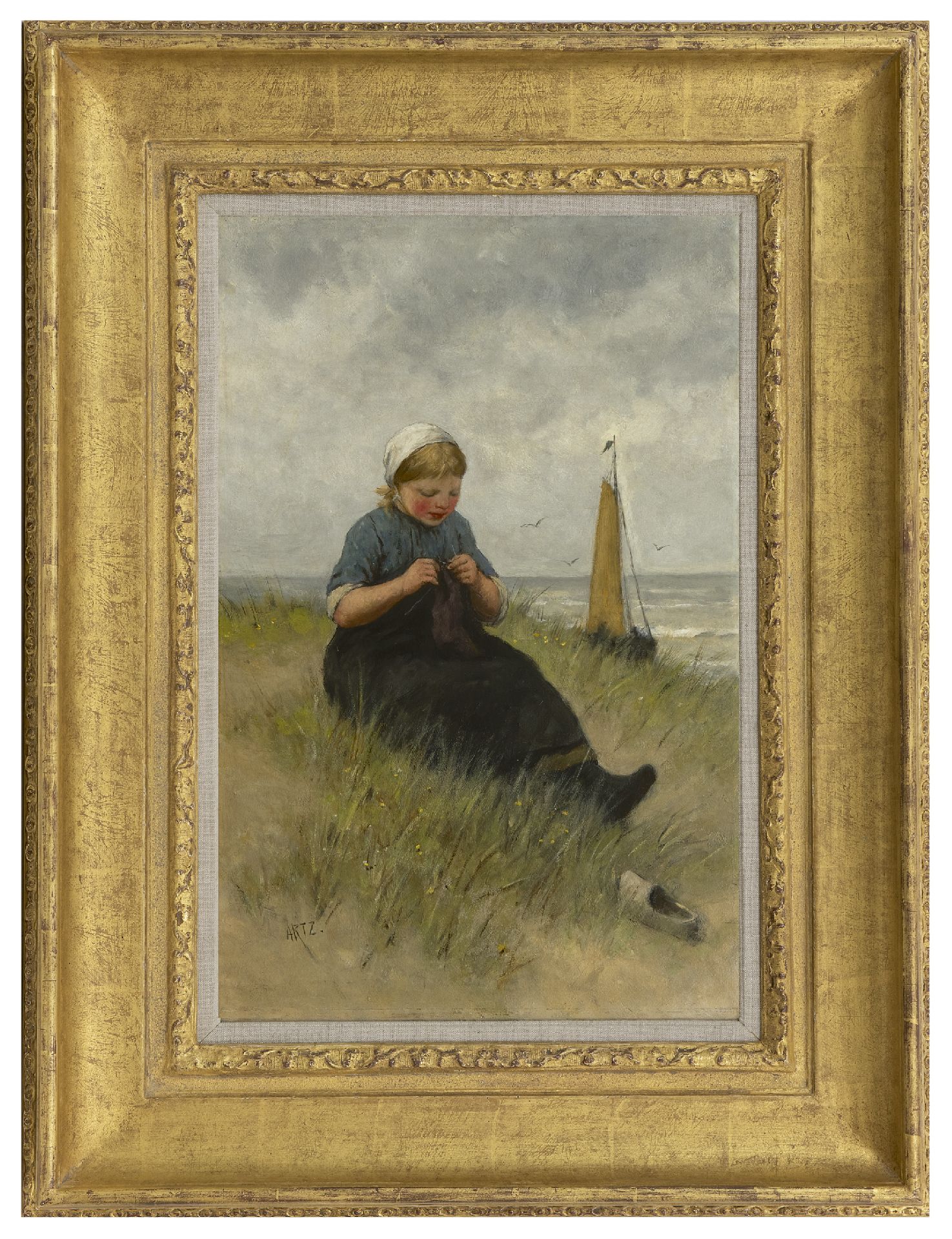 David Artz Kunstwerk • Gemälde • zuvor zu verkaufen Junge Strickerin in den Dünen