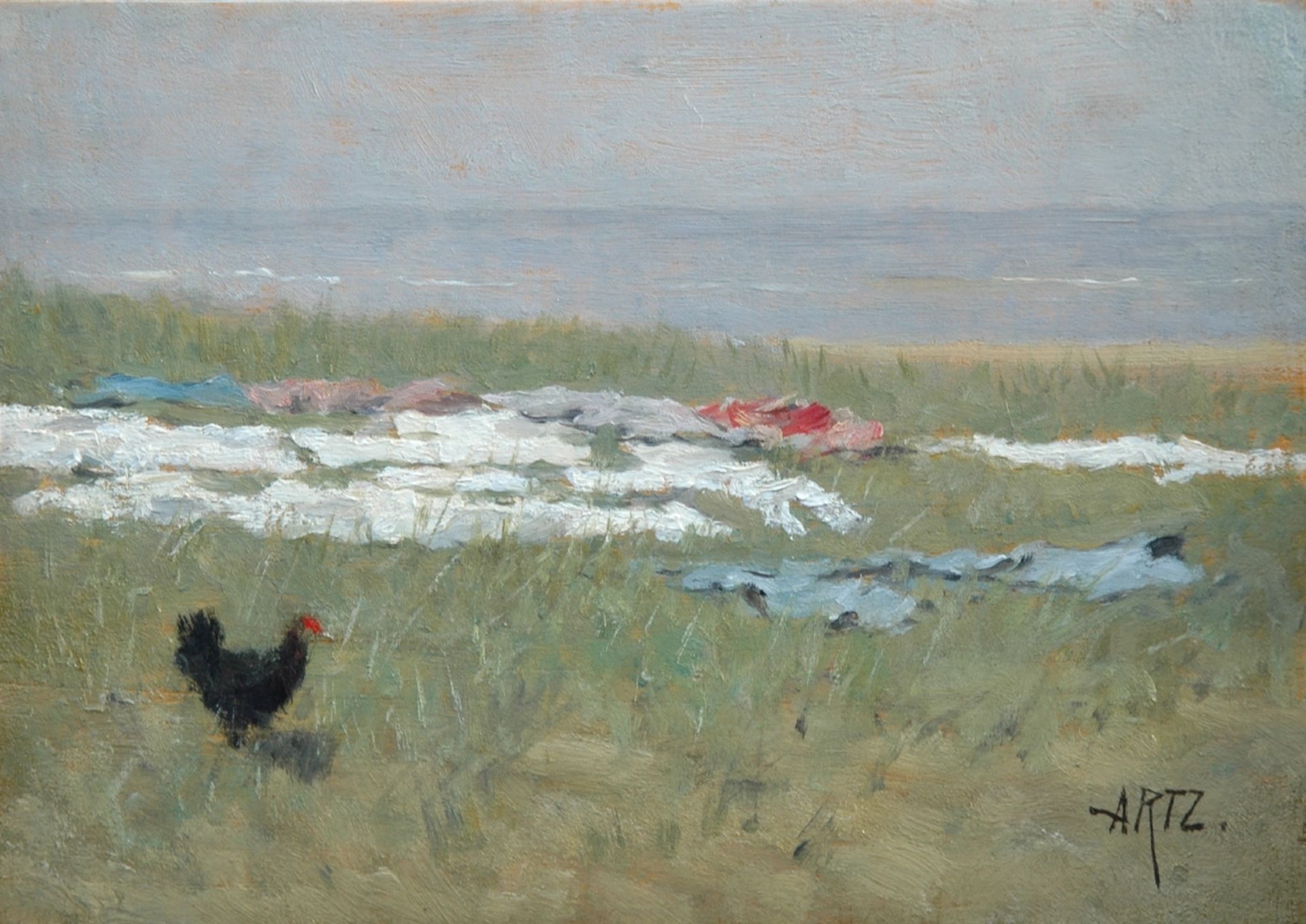 Der Haager Schulmaler D.A.C. Artz war schon zu seiner Zeit für seine schönen, sensibel gemalten Darstellungen des Fischerlebens in Scheveningen berühmt. Bei seiner Wahl für dieses Genre wurde er stark von Jozef Israels beeinflusst, mit dem er sich als junger Maler angefreundet hatte. Stilistisch war er jedoch kein Anhänger von Israels. Seine Malweise ist weniger atmosphärisch, viel schärfer in der Zeichnung und viel präziser in Details.