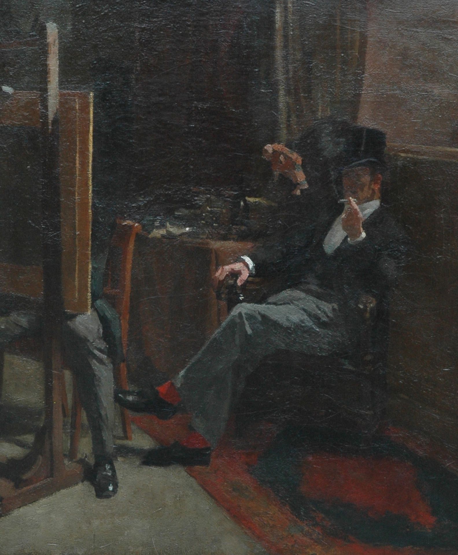 David Oyens und sein Zwillingsbruder Pieter malten hauptsächlich Motive aus der unmittelbaren Umgebung ihres täglichen Lebens als Künstler. Die Szenen werden berühmt in ihrem gemeinsamen Studio aufgenommen. Ihre Arbeit ist virtuos, mit einer festen und lebendigen Note gemalt und zeigt oft eine wahre 'Lebensfreude'. Die Brüder zogen 1860 zu ihrer Ausbildung nach Brüssel, wo sie sich einige Jahre später dauerhaft niederließen. Lange Zeit haben sie im gleichen Stil und mit denselben Motiven gemalt, im Einklang mit den aktuellen Entwicklungen in der belgischen modernen Kunst und beeinflusst von der Vision der Société Libre des Beaux-Arts. Dieser 1868 gegründete Brüsseler Künstlerverband setzte sich für künstlerische Freiheit in Bezug auf Stil und Thema ein und wünschte sich die Phantasie von 'la vie moderne'.