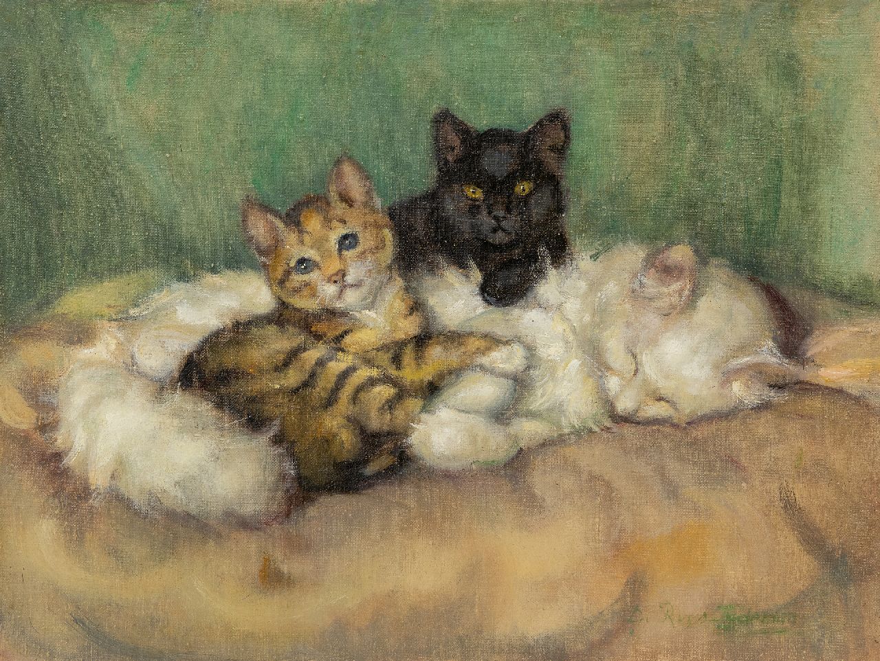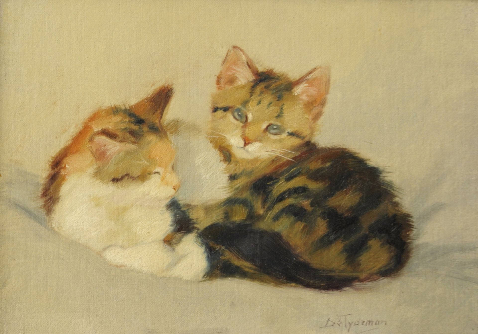 Dé Tijdeman Kunstwerk • Gemälde • zuvor zu verkaufen Zwei Kätzchen