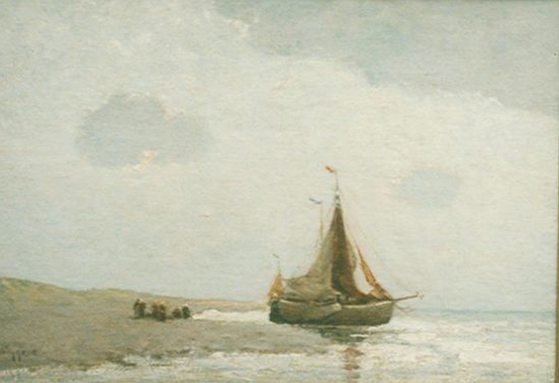 Derk Wiggers Kunstwerk • Gemälde • zuvor zu verkaufen A 'bomschuit' on the beach