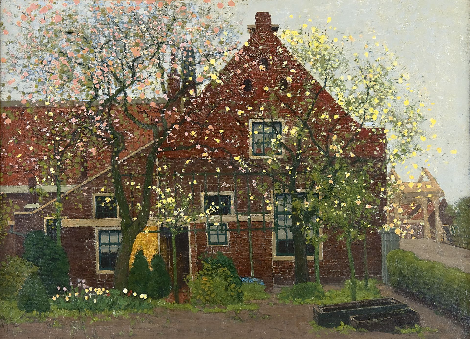 Derk Wiggers Kunstwerk • Gemälde • zuvor zu verkaufen A house in Loenen in spring