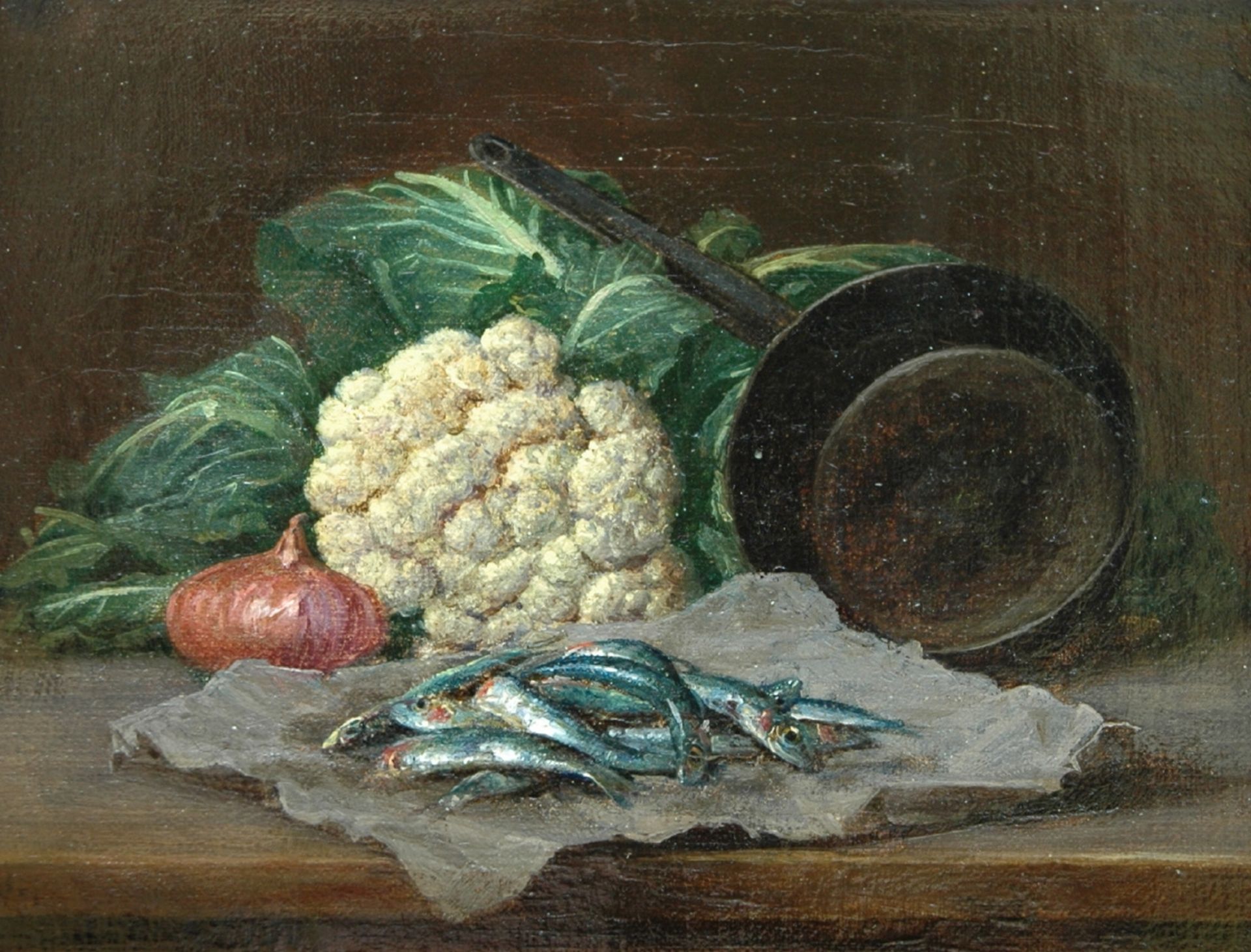 Duitse School, 19 eeuw Kunstwerk • Gemälde • zuvor zu verkaufen A still life with cauliflower
