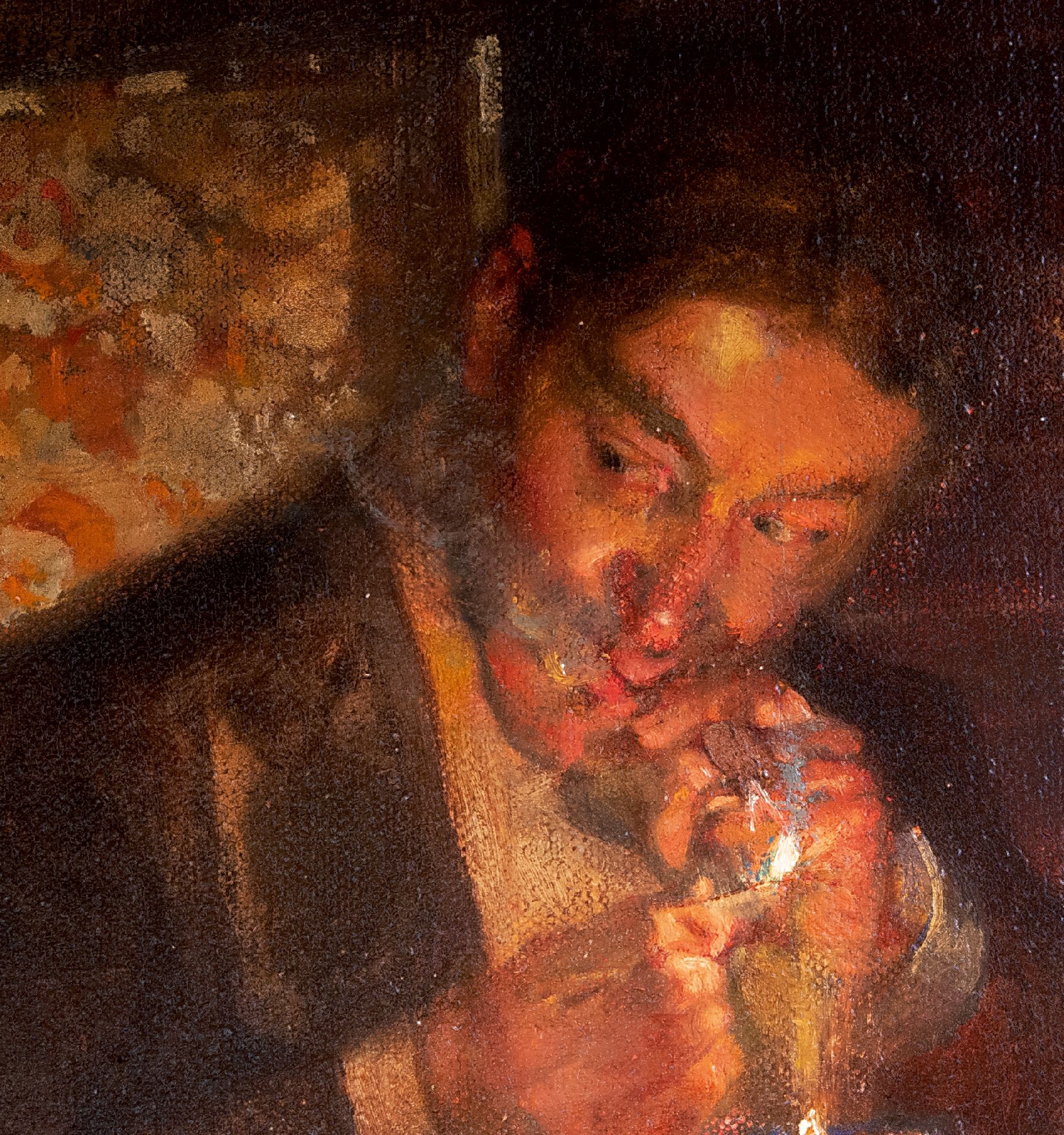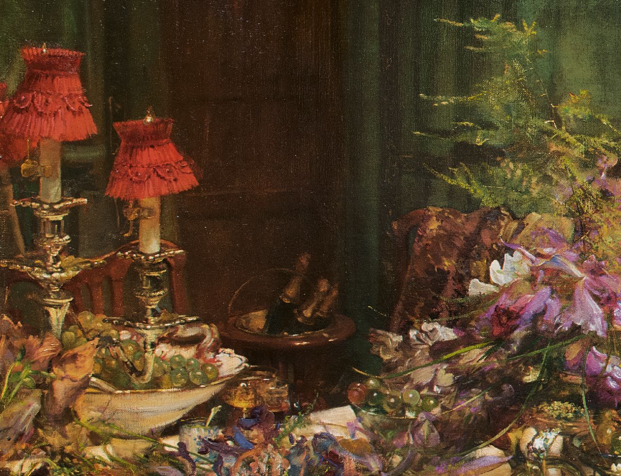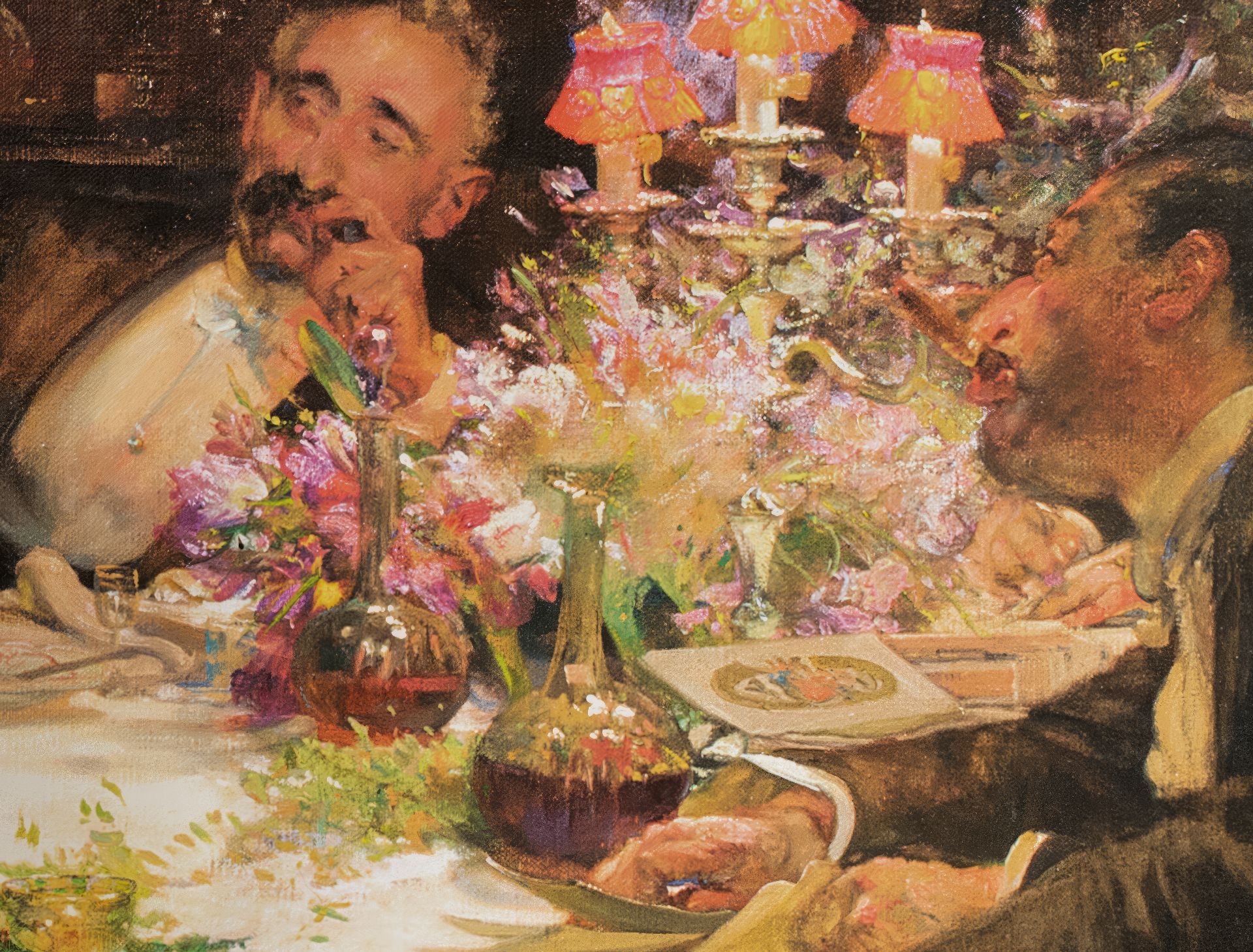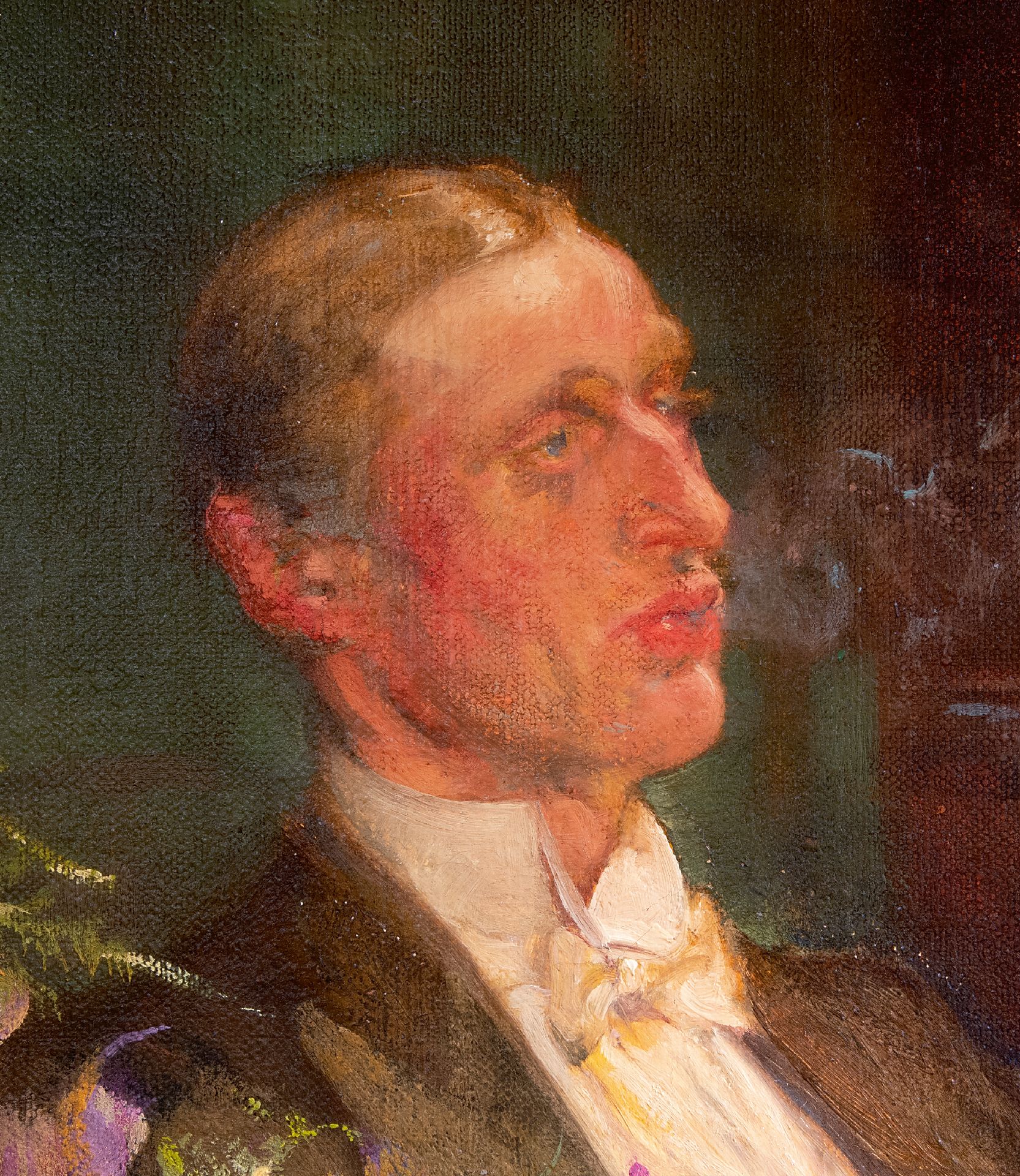'A problem painting' Während der Ausstellung 1913 in der Londoner Royal Academy wurden drei Gemälde ausgestellt, die aktuelle soziale oder politische Themen behandelten und als 'problem paintings' galten. Zu einer Zeit, als die Boulevardpresse ein Publikum ansprach das nach Melodramen und politischen Skandalen lechzte, hatten Künstler viel zu erzählen. Eines der drei Gemälde in der Ausstellung war Edward Bundys 'Finanzen', inspiriert von der Marconi-Affäre. 1912 handelte die britische Admiralität einen Vertrag mit der Marconi Company über die Installation eines drahtlosen Kommunikationssystems aus. Ganz England war von dem darauffolgenden politischen und finanziellen Skandal fasziniert. Die jüdische Familie Isaacs, Direktoren der Marconi Company, wurde der Vetternwirtschaft beschuldigt, und drei Minister wurden wegen illegaler Aktienspekulation angeklagt. Im Frühjahr 1913 sagten Zeugen im Unterhaus aus, und ein Bericht wurde veröffentlicht und debattiert. Im Juni wurden die drei Minister freigesprochen, und im Juli wurde ein neuer Vertrag unterzeichnet. Genau in dieser Zeit erregte Bundys 'Finance', in der Presse als 'Ein edwardianisches Problembild kombiniert mit einem opulenten Stillleben' beschrieben, während der Ausstellung der Royal Academy große Aufmerksamkeit. Das 'Problembild' bot den Betrachtern eine wunderbare Gelegenheit, ihre Meinung zum Skandal zu äußern. Die Szene mit kraftvoll dargestellten, fast karikaturhaften Figuren, die nach einem üppigen Mahl in eine hitzige Diskussion verwickelt sind, zeigt eine klassische Bundy-Konstruktion. Sie bietet eine Momentaufnahme eines Aspekts einer Aktivität und lässt den Betrachter gleichzeitig erkennen, dass im Hintergrund viel mehr passiert. Nach einer zweiten Ausstellung in der Royal Academy im Jahr 1916 wurde das Gemälde von William Lever erworben, Mitbegründer der Lever Brothers, dem Vorläufer von Unilever in Großbritannien. 1970 gelangte das Werk in den Besitz der Sammler John und Johanna Bass, New York, und 1979 wurde es vom Bass Museum of Art, Miami Beach, erworben.