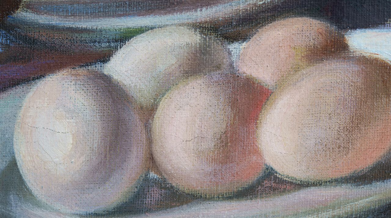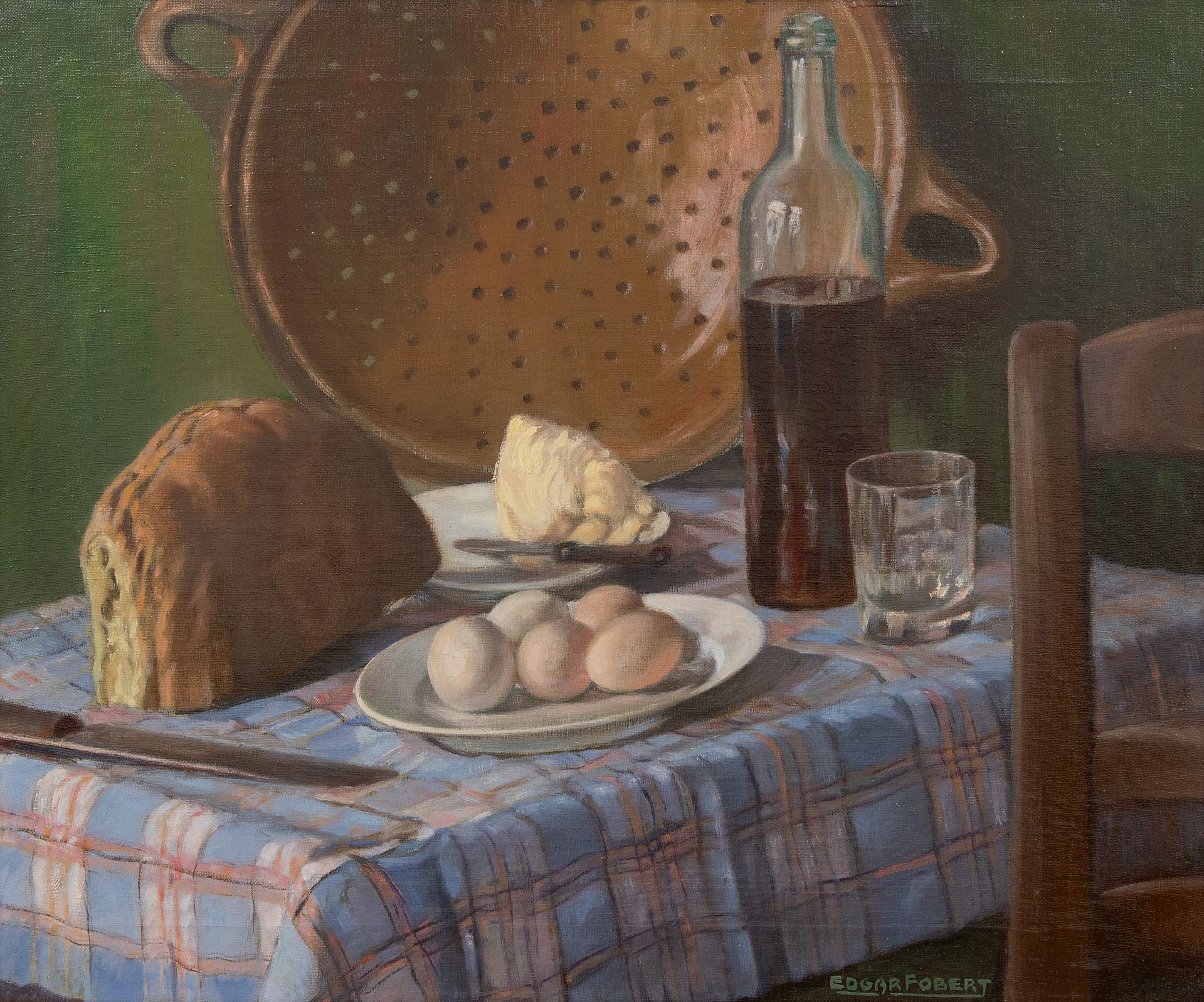 Edgar Fobert Kunstwerk • Gemälde • zu verkaufen Stillleben mit Brot, Butter und Eiern