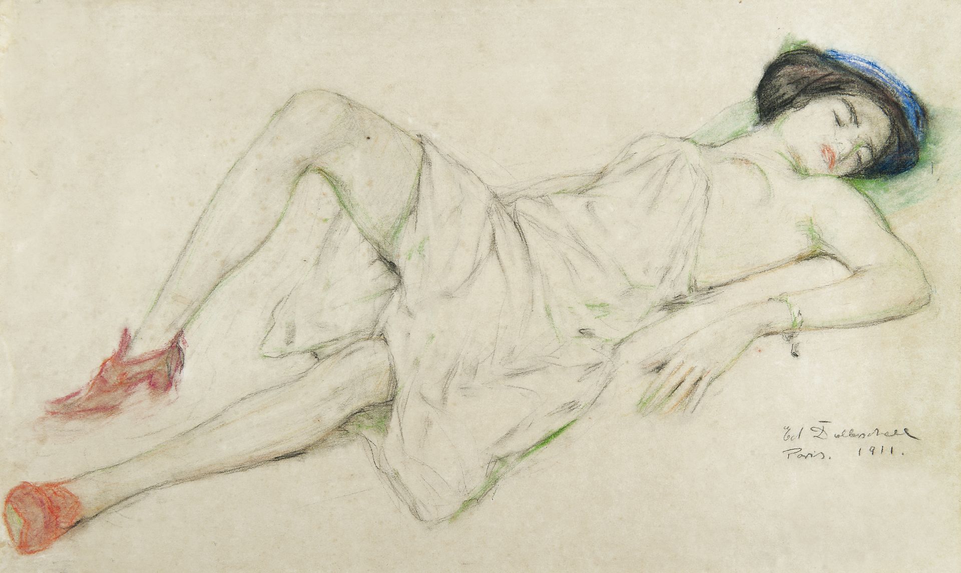 Dollerschell E.  | Eduard Dollerschell, Liegende Frau, Pastell auf Papier 36,6 x 63,6 cm, Unterzeichnet r.u. und datiert 'Paris' 1911