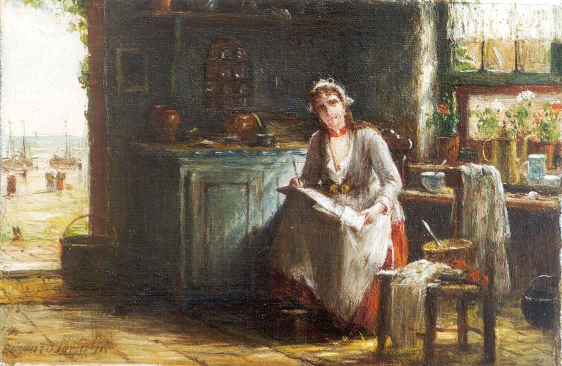 Edward Portielje Kunstwerk • Gemälde • zuvor zu verkaufen Keeping the accounts