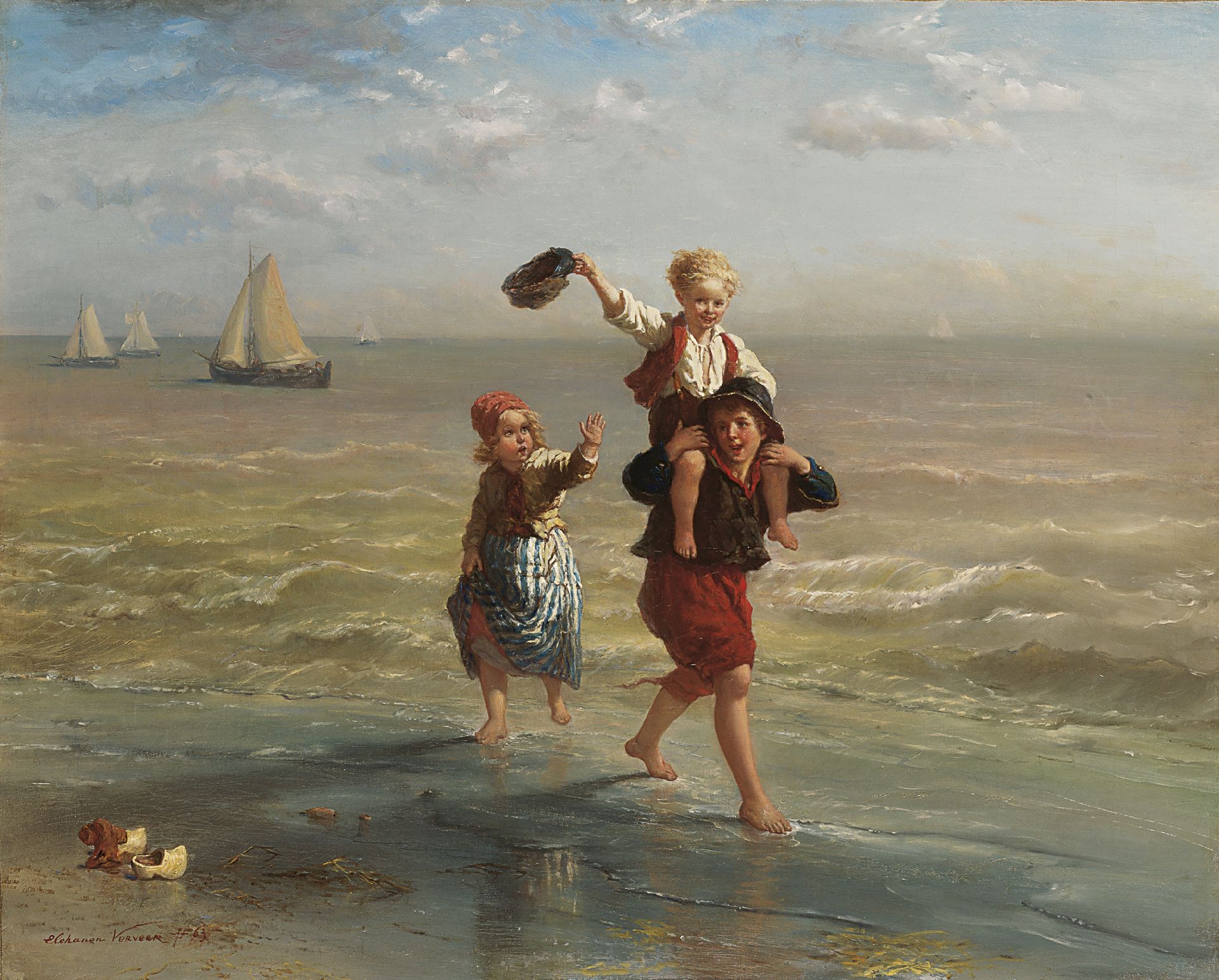 Elchanon Verveer Kunstwerk • Gemälde • zuvor zu verkaufen Children playing in the surf