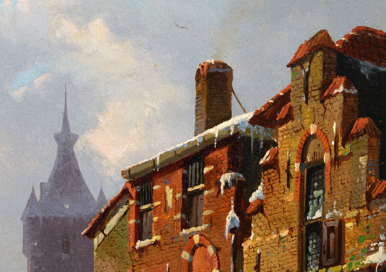 Elias Pieter van Bommel Kunstwerk • Gemälde • zu verkaufen Holländische Stadtansicht mit der Oude Kerk von Delft