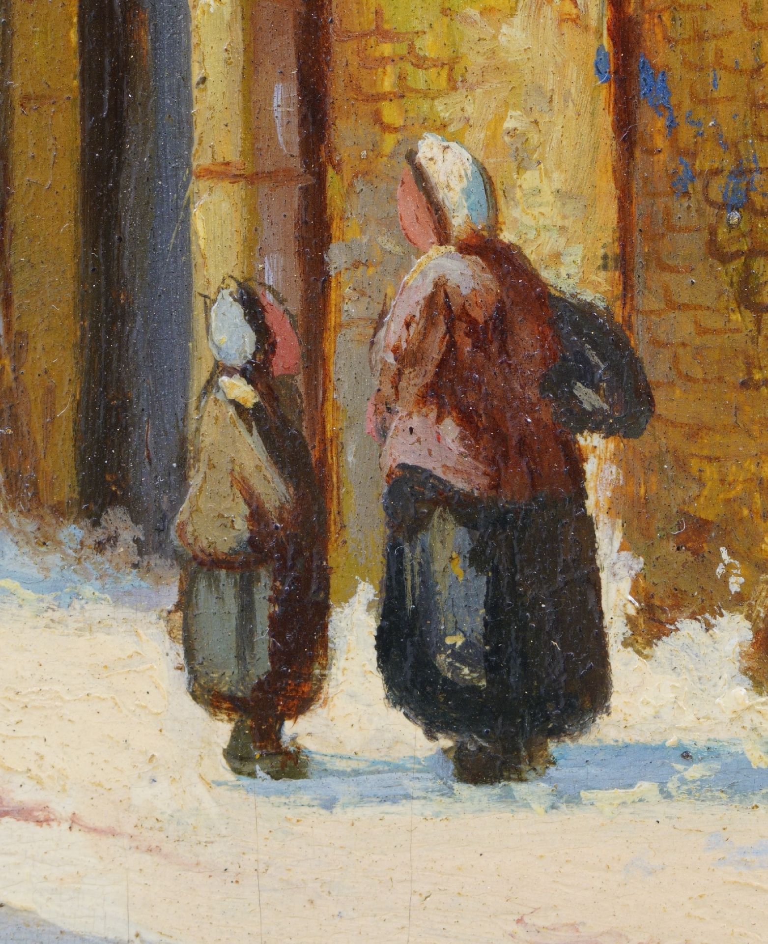 Bommel E.P. van | Elias Pieter van Bommel | Gemälde zum Verkauf angeboten | Holländische Stadtansicht mit der Oude Kerk von Delft, Öl auf Holz 33,2 x 27,4 cm