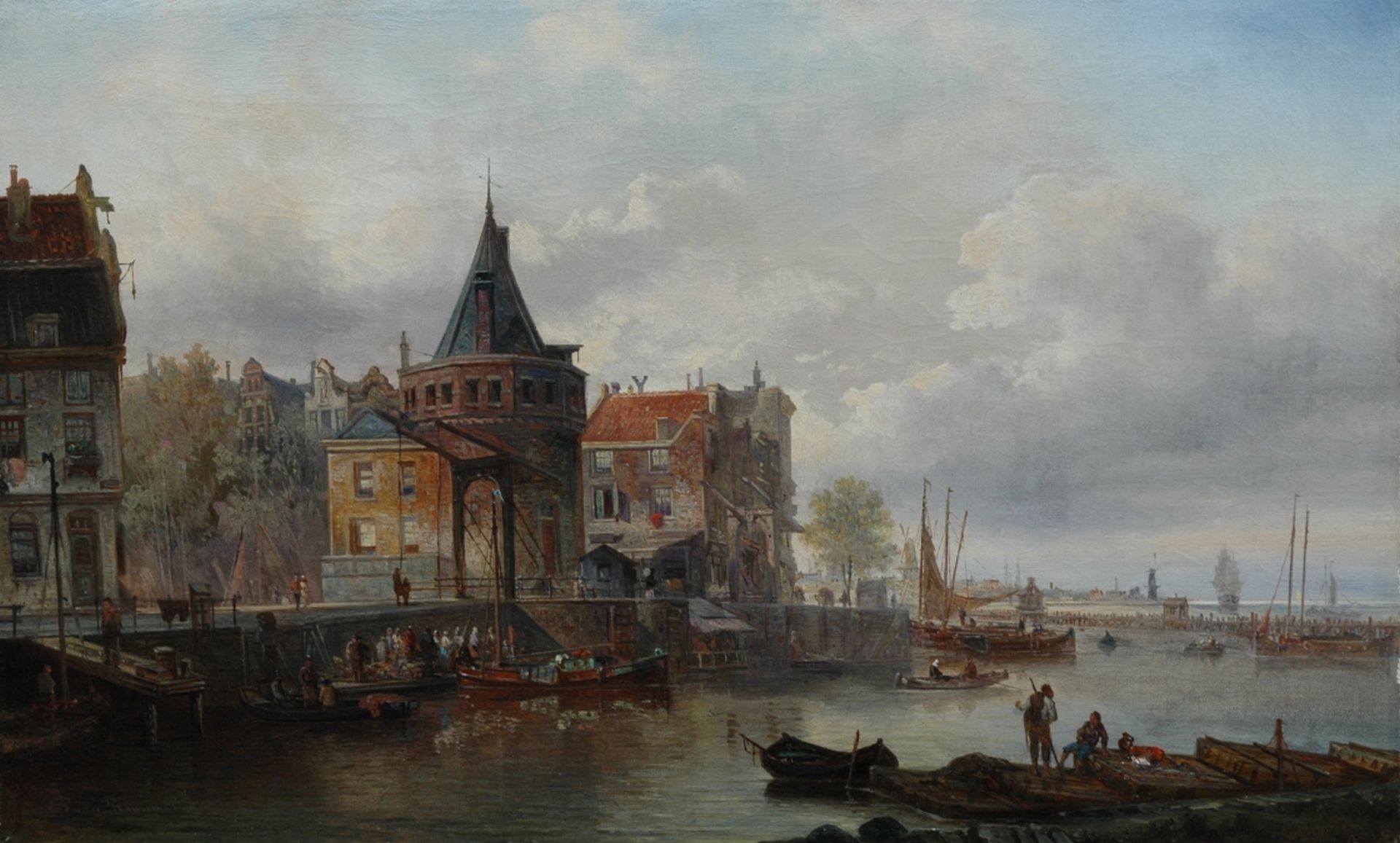 Elias Pieter van Bommel Kunstwerk • Gemälde • zuvor zu verkaufen A view of the Scheierstoen, Amsterdam