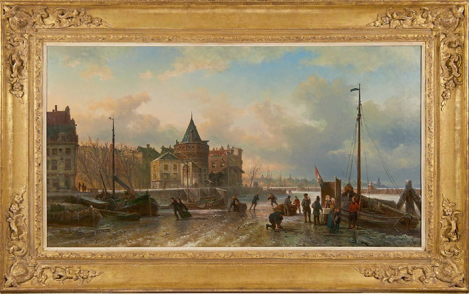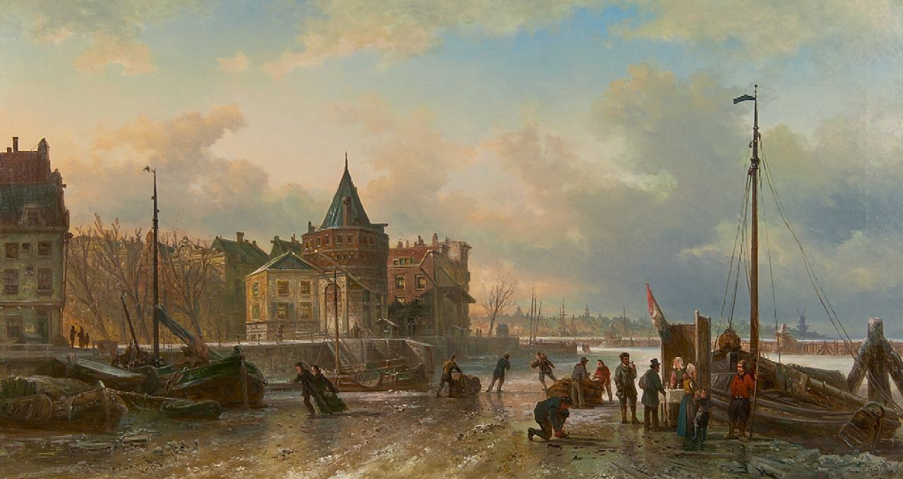 Elias Pieter van Bommel Kunstwerk • Gemälde • zuvor zu verkaufen Eisfreude bei dem Schreiersturm, Amsterdam