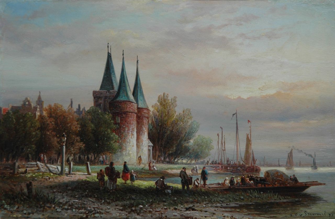 Elias Pieter van Bommel Kunstwerk • Gemälde • zuvor zu verkaufen Figures around the Koornmarktspoort, Kampen