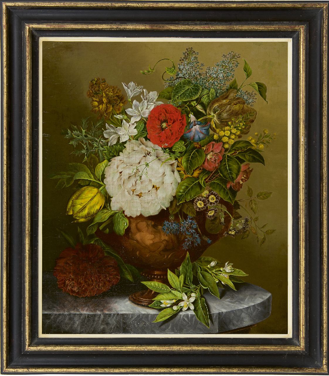 Elisabeth Iosetta Hoopstad Kunstwerk • Gemälde • zuvor zu verkaufen Blumenstilleben in Terrakotta Vase