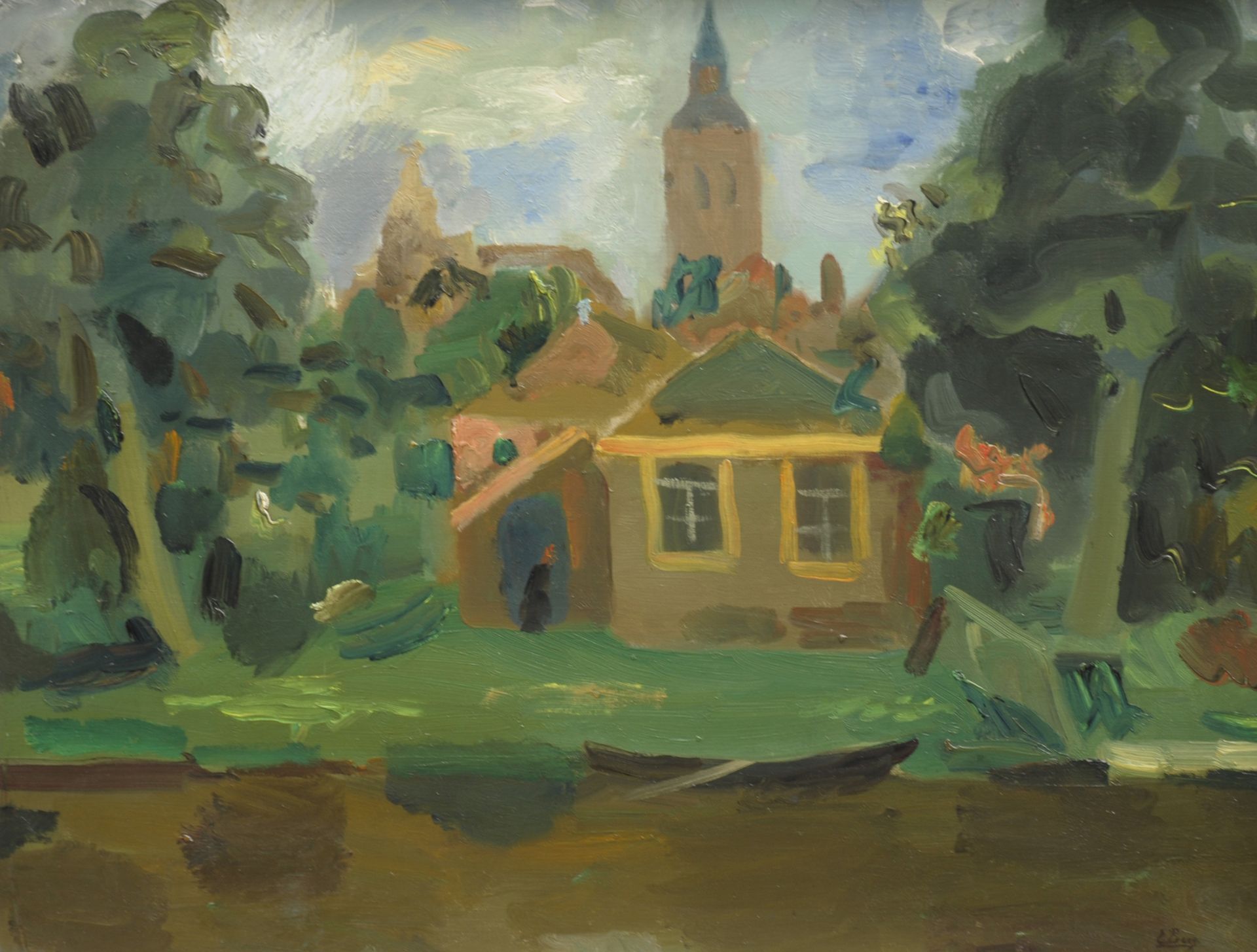 Die in Oberschlesien geborene Malerin Else Berg war eine der ersten in den Niederlanden, die sich für die nüchternen Formen und den lebendigen Farbgebrauch der deutschen Expressionisten interessierte. In einer robust komponierten Sprache malte sie Landschaften, Figuren und Stillleben. Nachdem sie 1915 mit ihrem Ehemann Mommie Schwarz nach Bergen gezogen war, wurde ihre Palette düsterer, obwohl die lebhaften Rosa, Gelb und Blau noch an den deutschen Expressionismus erinnern. Das rhythmische Auffächern ihrer Pinselstriche bezieht sich auf den Einfluss der Theosophie, mit der sie über ihre Freundin Charley Toorop in Kontakt kam.