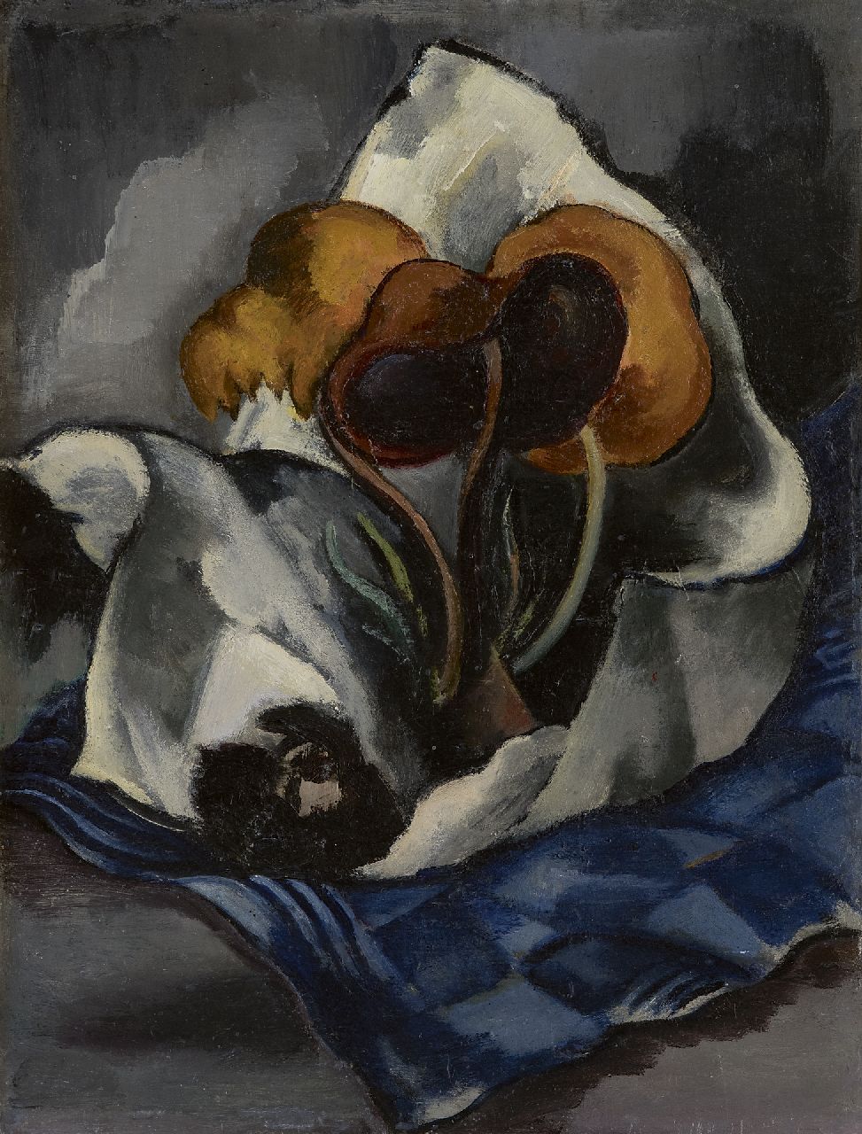 Die in Oberschlesien geborene Malerin Else Berg war eine der ersten in den Niederlanden, die sich für die nüchternen Formen und den lebendigen Farbgebrauch der deutschen Expressionisten interessierte. In einer robust komponierten Sprache malte sie Landschaften, Figuren und Stillleben. Nachdem sie 1915 mit ihrem Ehemann Mommie Schwarz nach Bergen gezogen war, wurde ihre Palette düsterer, obwohl die lebhaften Rosa, Gelb und Blau noch an den deutschen Expressionismus erinnern. Das rhythmische Auffächern ihrer Pinselstriche bezieht sich auf den Einfluss der Theosophie, mit der sie über ihre Freundin Charley Toorop in Kontakt kam.