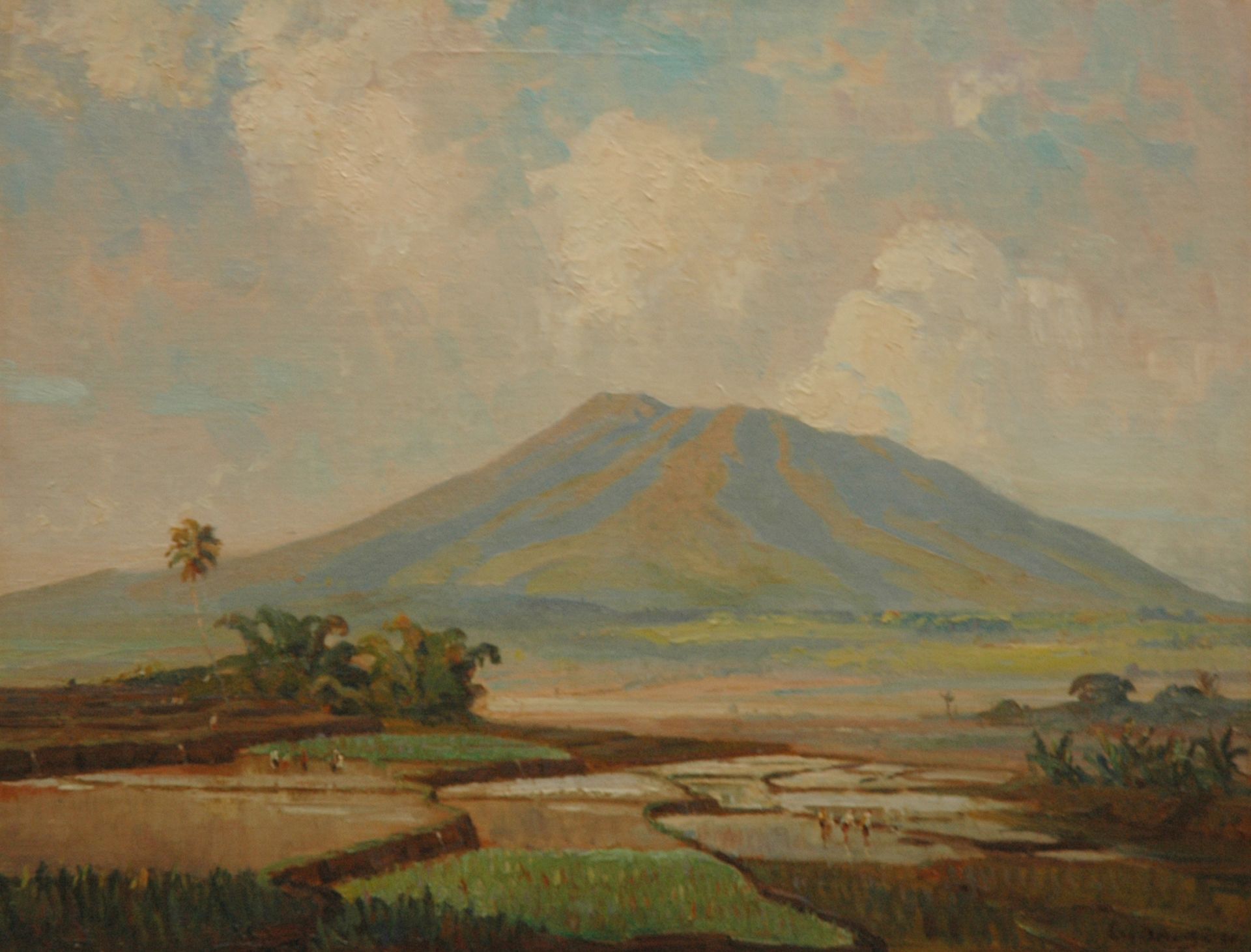 Ernest Dezentjé Kunstwerk • Gemälde • zuvor zu verkaufen Pickers in the ricefields near a vulcano