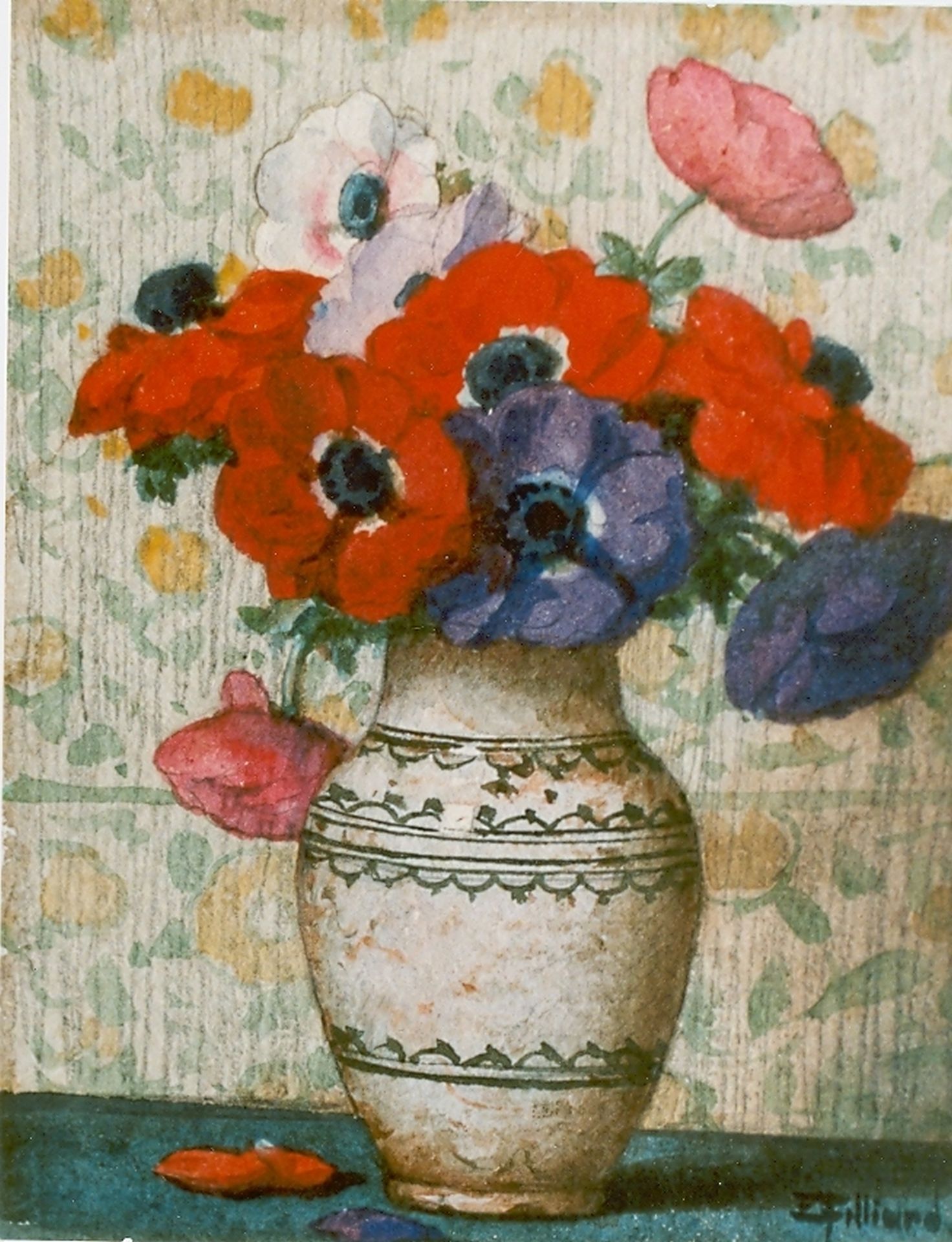 Ernest Filliard Kunstwerk • Aquarell • Zeichnung • zuvor zu verkaufen Anemones in a vase
