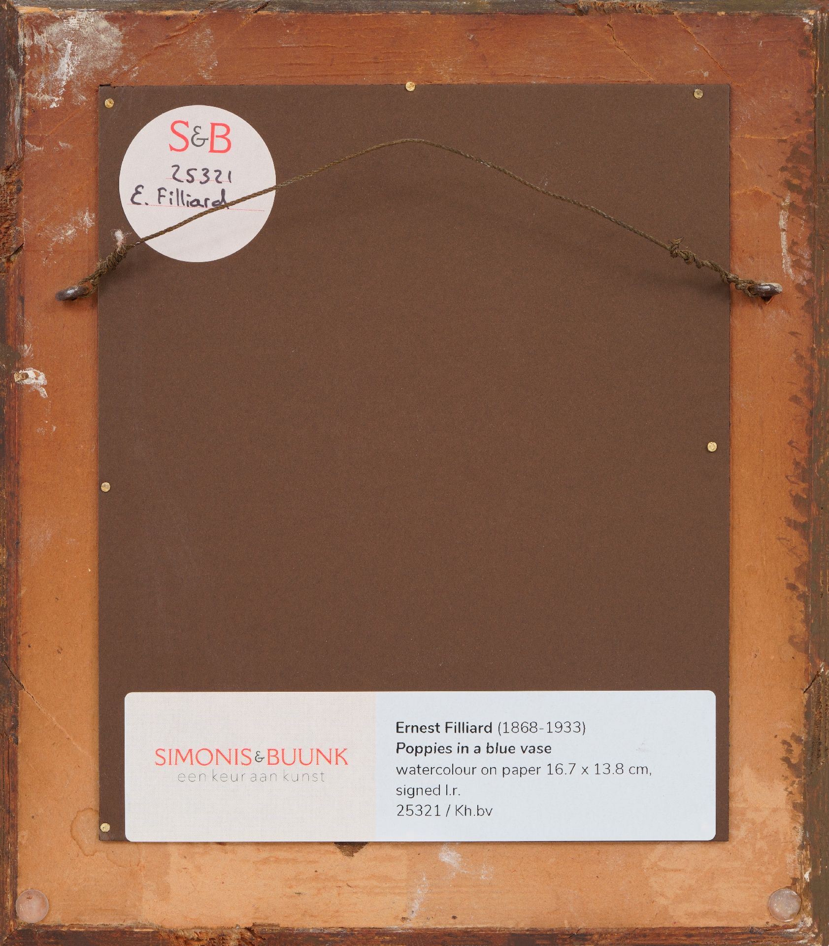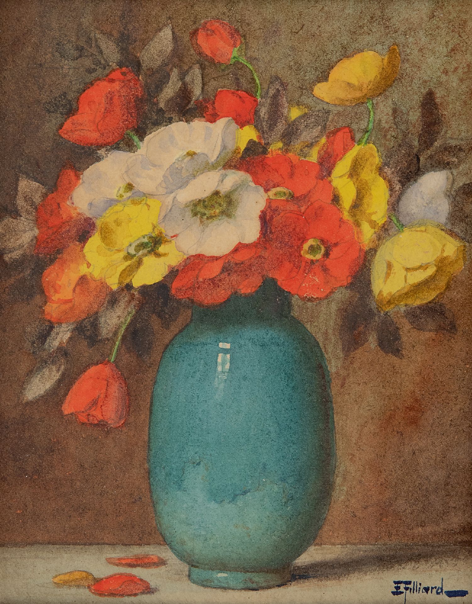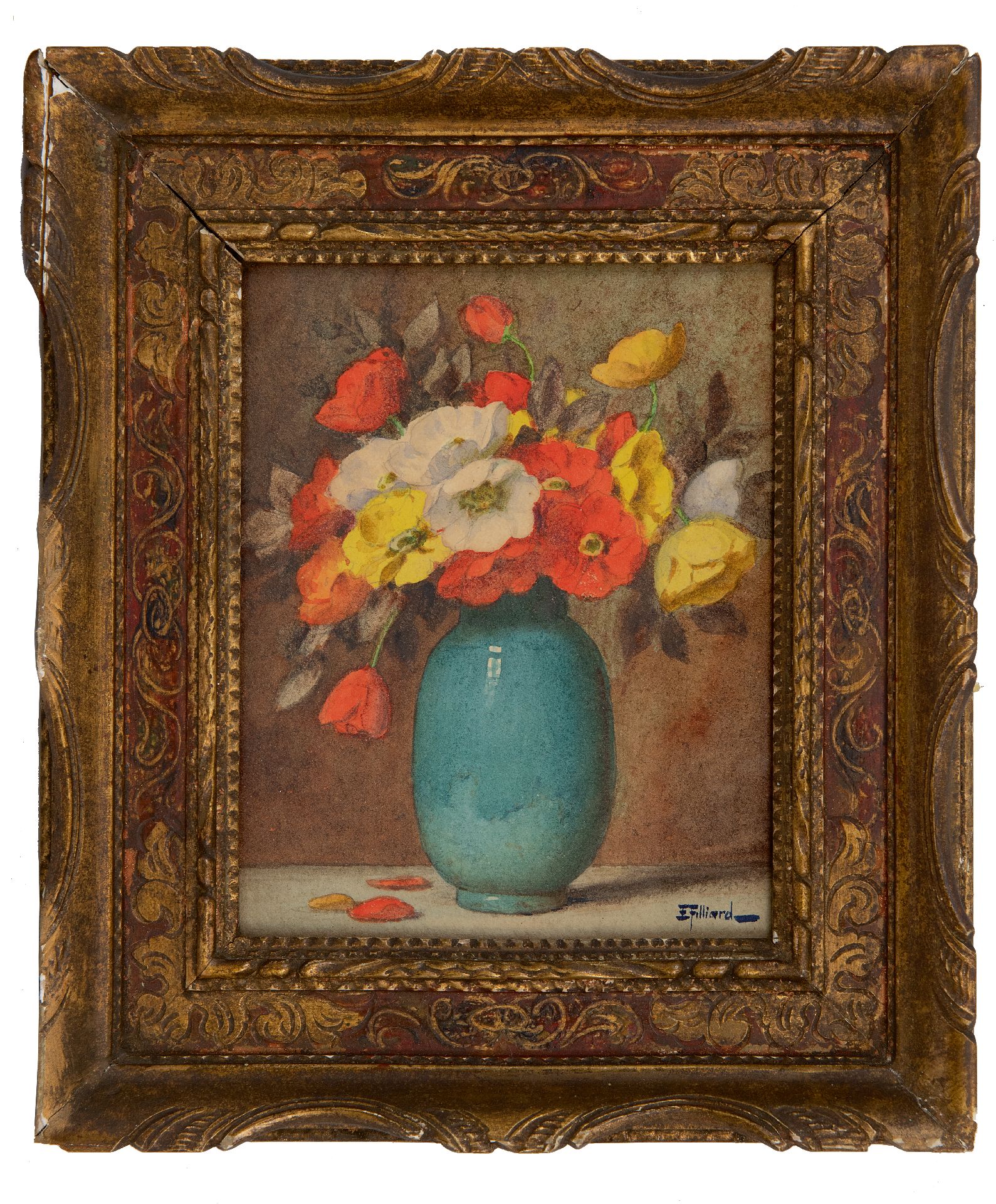 Ernest Filliard Kunstwerk • Aquarell • Zeichnung • zu verkaufen Mohnblumen in einer blauen Vase