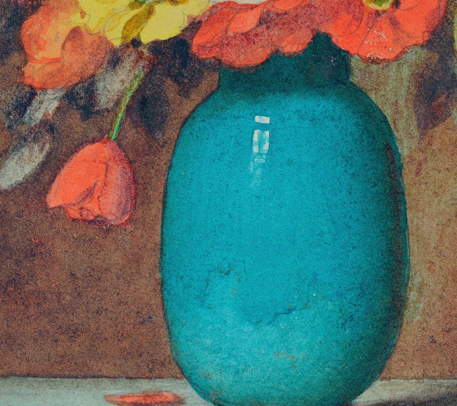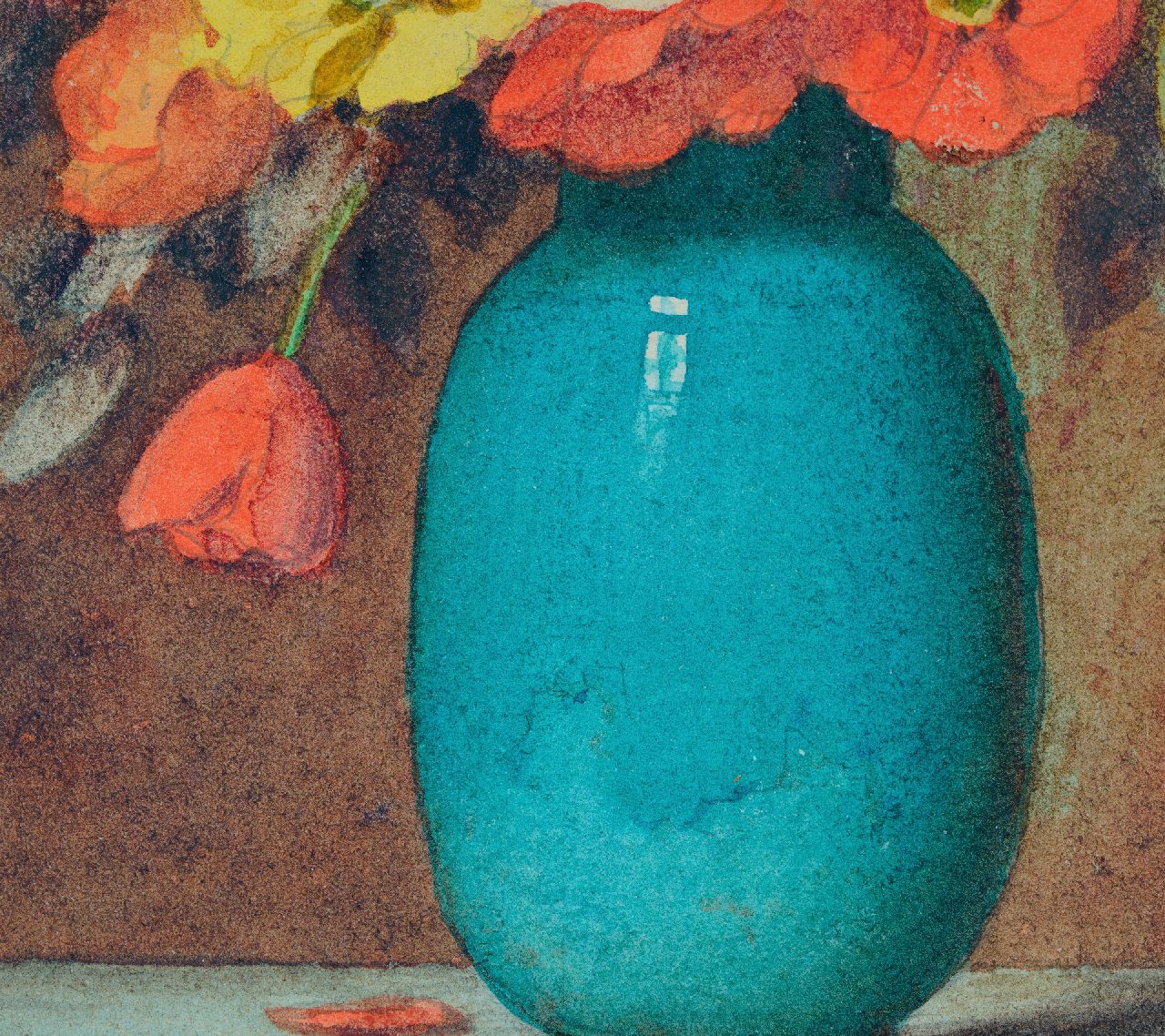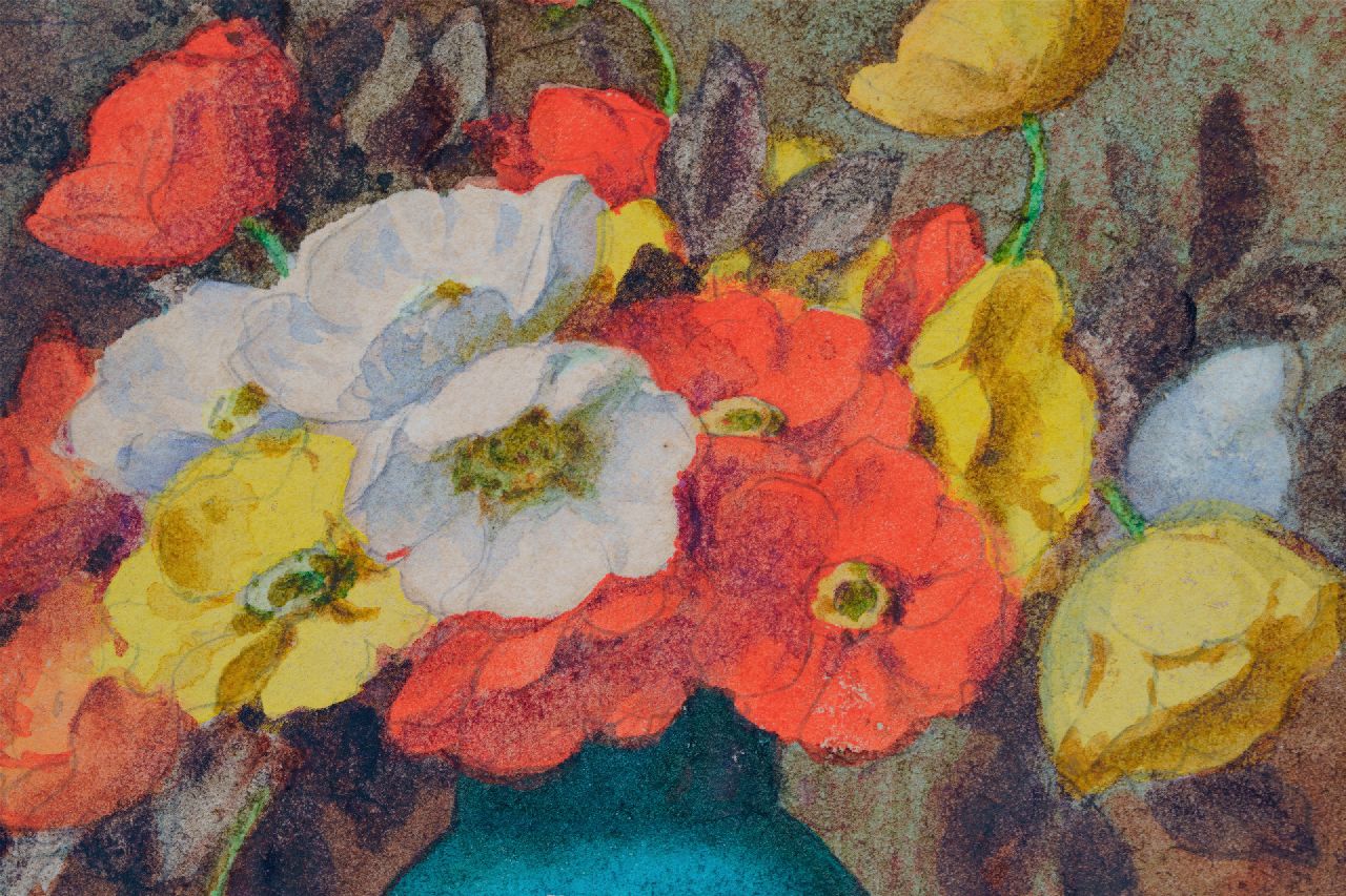 Ernest Filliard Kunstwerk • Aquarell • Zeichnung • zu verkaufen Mohnblumen in einer blauen Vase