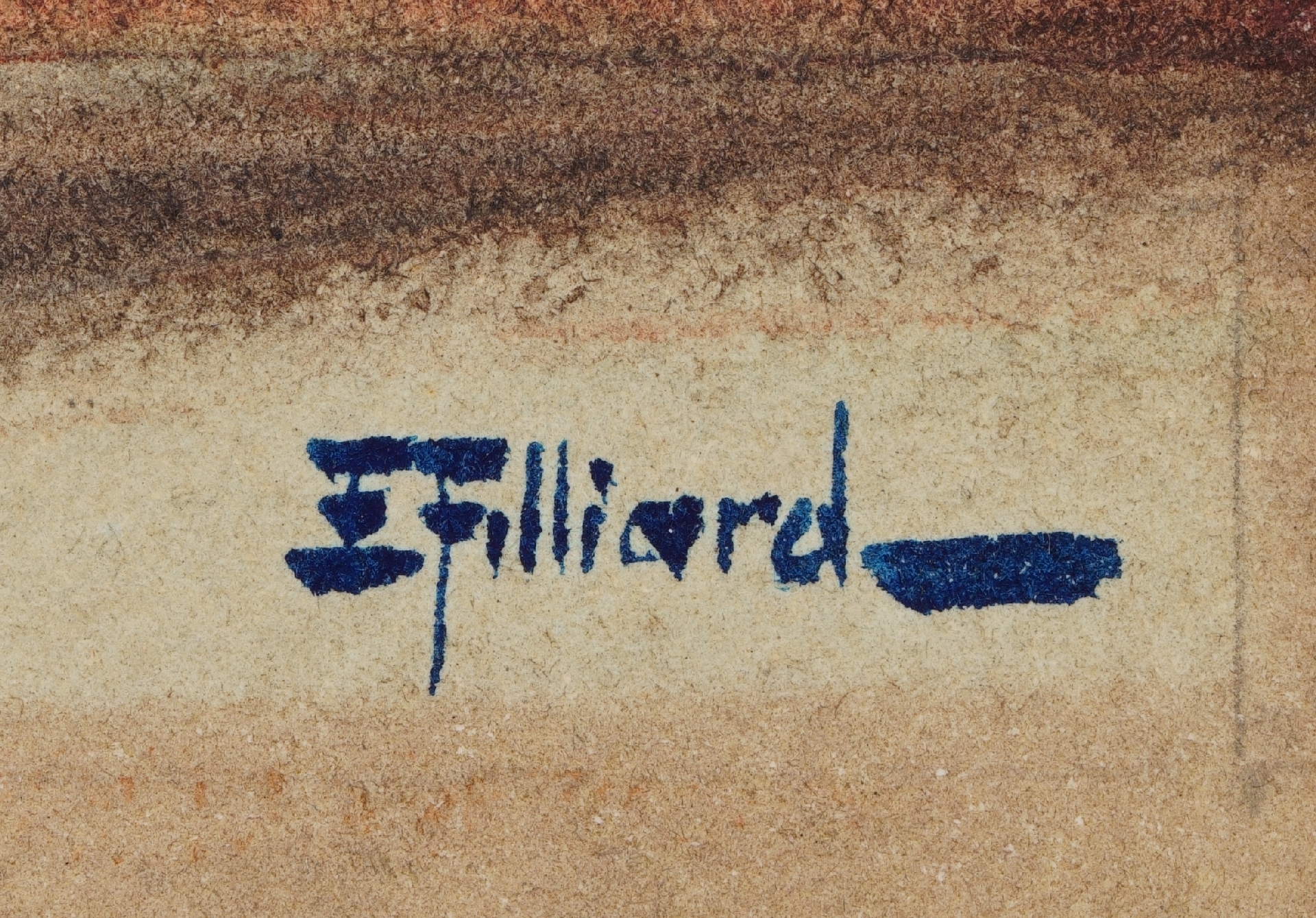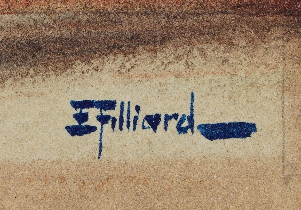 Ernest Filliard war ein französischer Aquarellist von Blumenstillleben in oft ausgeprägten Farben, die für verschiedene Arten von Vasen und Schalen geeignet waren. Er war Schüler des Porträtmalers Benoît Molin und lebte und arbeitete in Chambéry. Filliard war Mitglied der Société des Artistes Français und wurde 1914 in der Ehrenlegion, der höchsten und wichtigsten französischen Nationalauszeichnung, zum Ritter geschlagen.