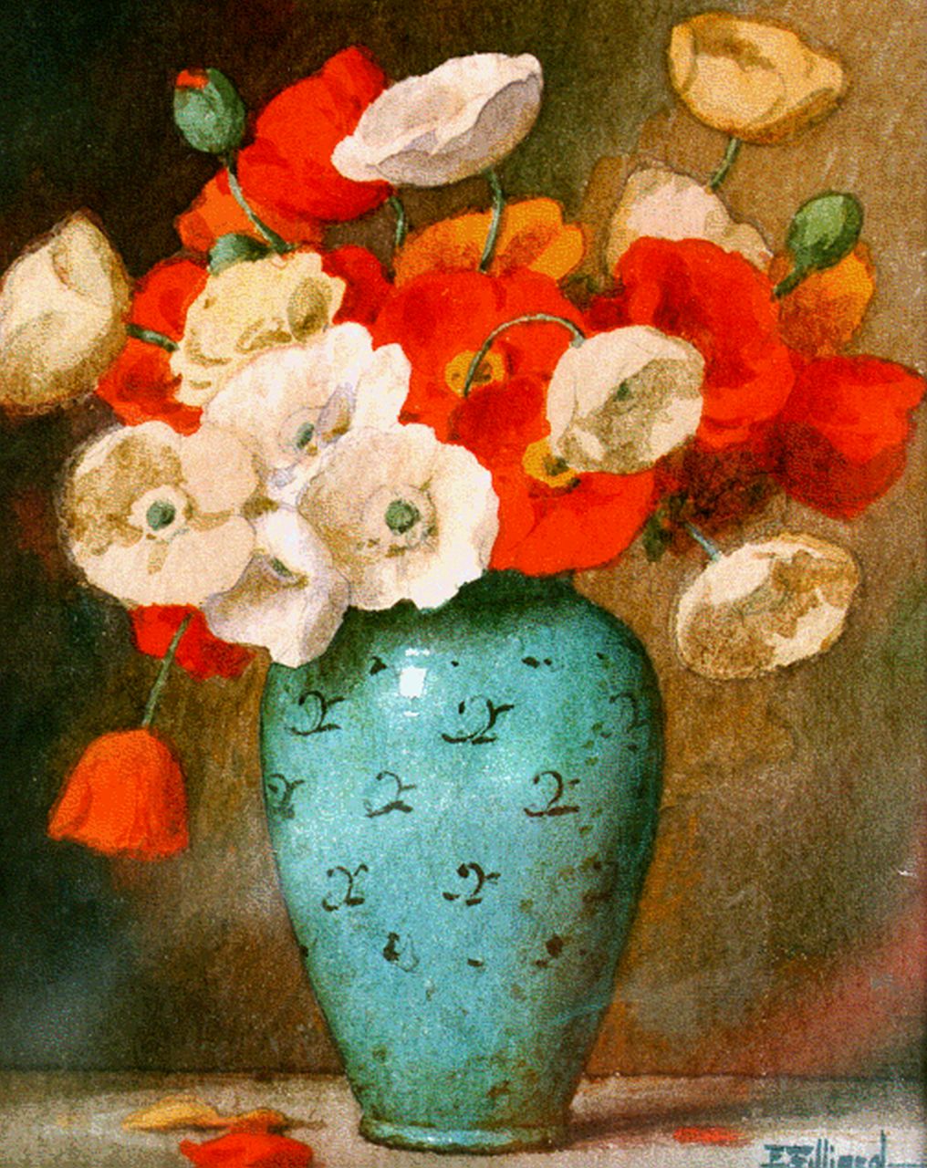 Ernest Filliard Kunstwerk • Aquarell • Zeichnung • zuvor zu verkaufen Poppies