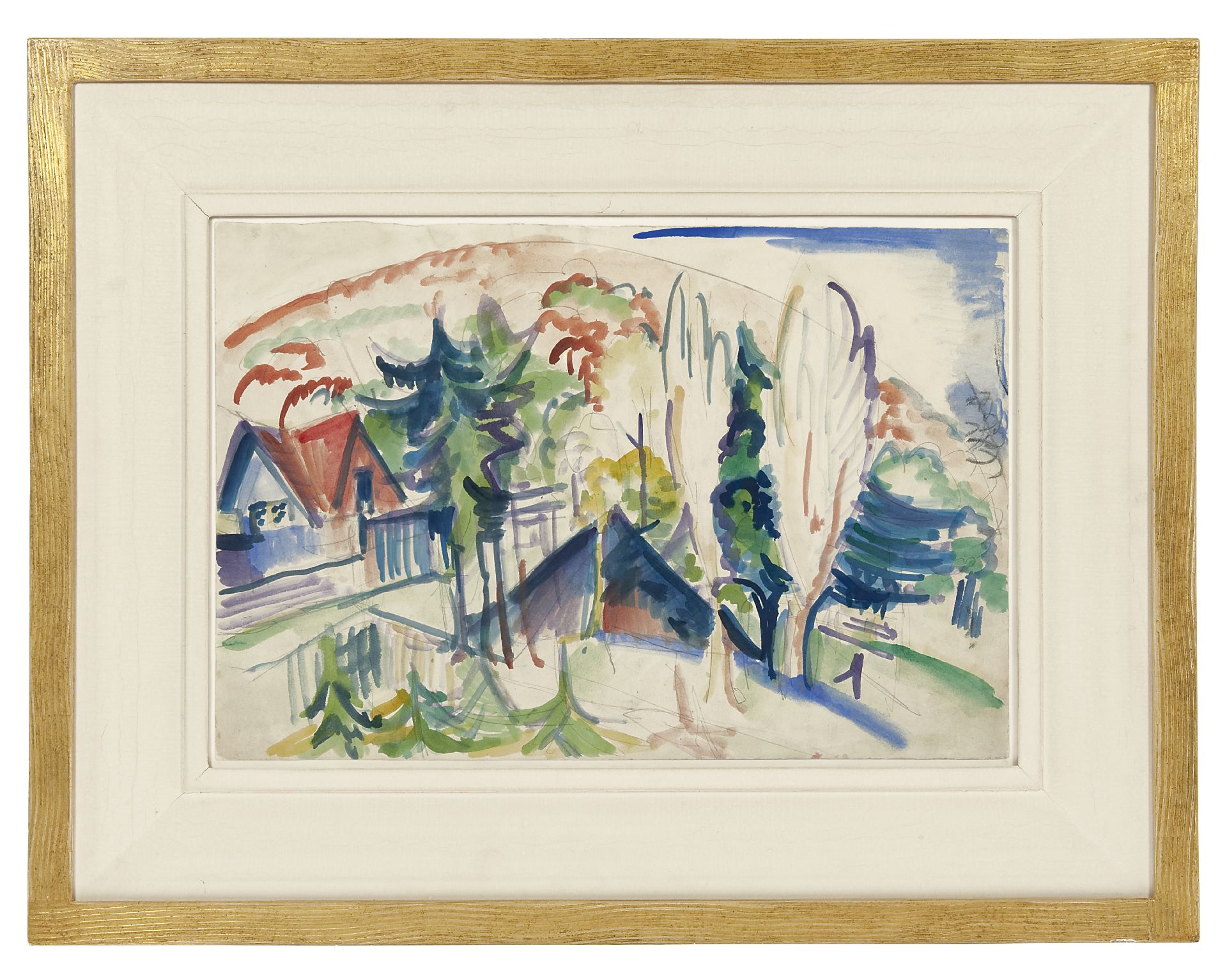 Ernst Ludwig Kirchner Kunstwerk • Aquarell • Zeichnung • zuvor zu verkaufen A village in the Taunus mountains, Germany