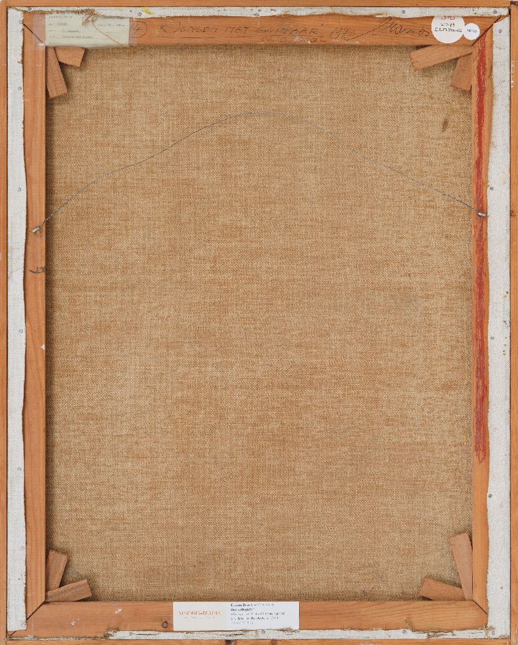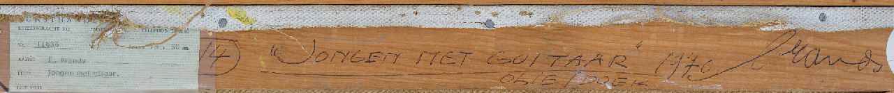 Gerade als man erwartet, dass Brands die Figuration hinter sich gelassen hat, malt er 1970 diesen 'Jungen mit Gitarre'. Eine verträumte Figur mit einem Musikinstrument erscheint vor einem hellen Hintergrund in einer warmen Farbpalette, doch gerade als man meint, sie fast scharf gesehen zu haben, verschwindet sie sanft im Hintergrund.