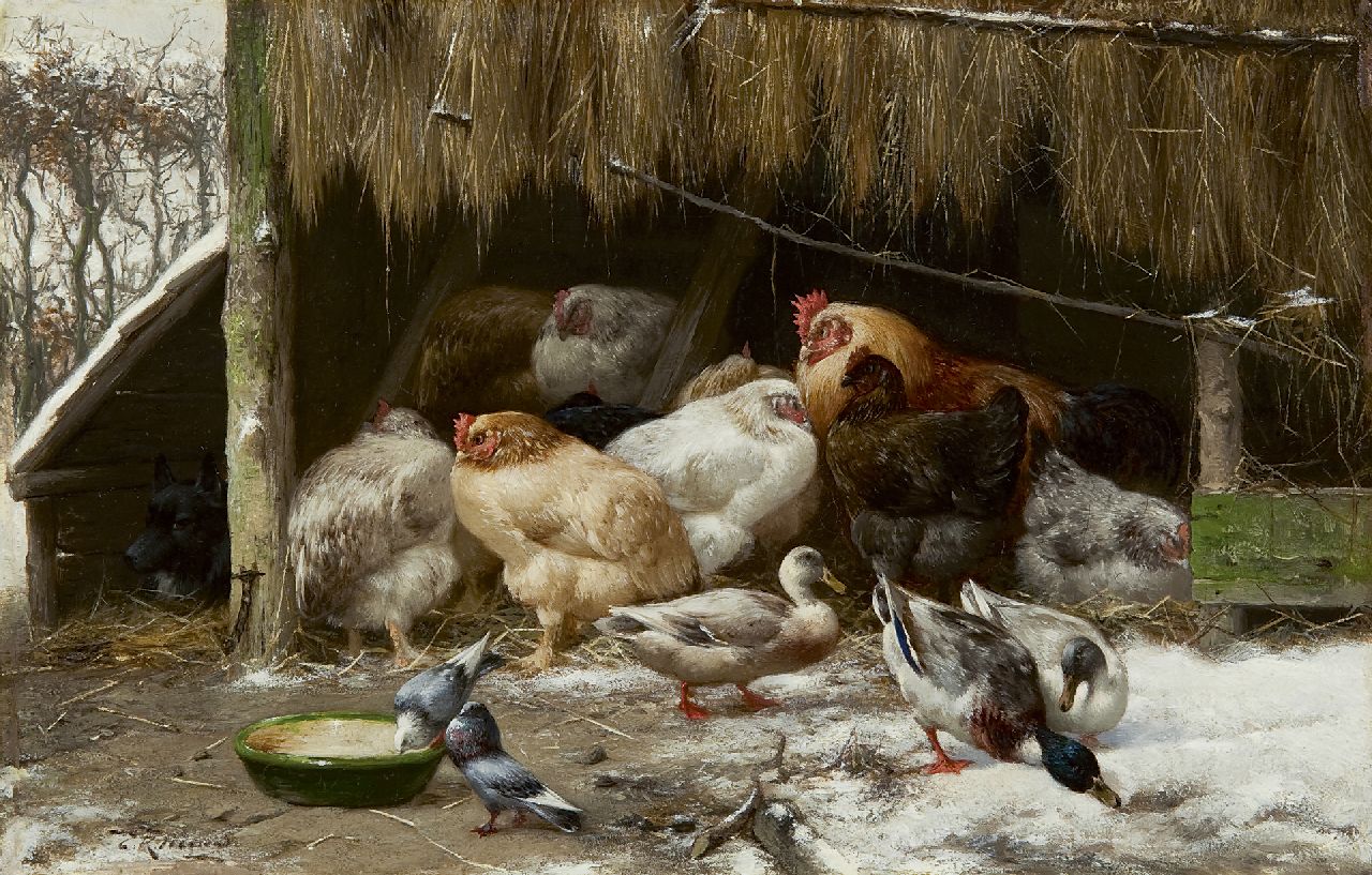 Der in Puurs geborene belgische Künstler Eugène Remy Maes malte hauptsächlich Genrebilder mit Tieren und Landschaften mit Kühen, Schafen und Geflügel. Er zählt zu den Anhängern des bekannten belgischen Viehmalers Eugène Verboeckhoven. Maes arbeitete manchmal mit anderen Künstlern wie David Col und Jan Portielje zusammen und versorgte ihre Landschaften immer mit Vieh. Zu Beginn seiner Karriere benutzte er oft das Pseudonym Ermaes, später unterschrieb er auch mit dem Namen seines Cousins: Theo van Sluys. Maes war mit seiner Arbeit erfolgreich, besonders bei den Amerikanern, die Belgien besuchten. Viele seiner Gemälde befinden sich in Sammlungen in den Vereinigten Staaten.