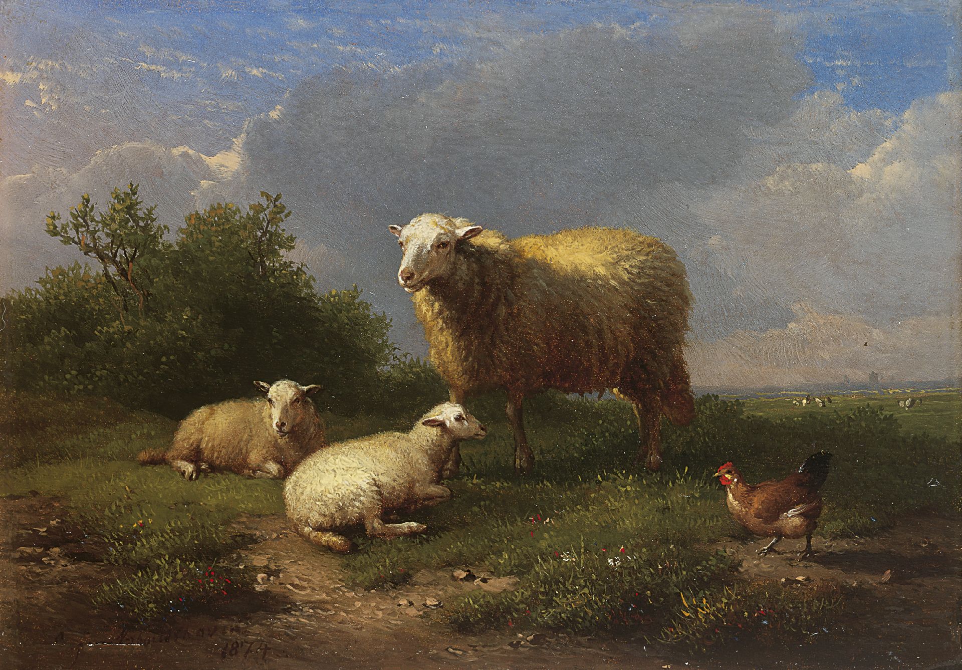 A landscape with sheep and lambs
