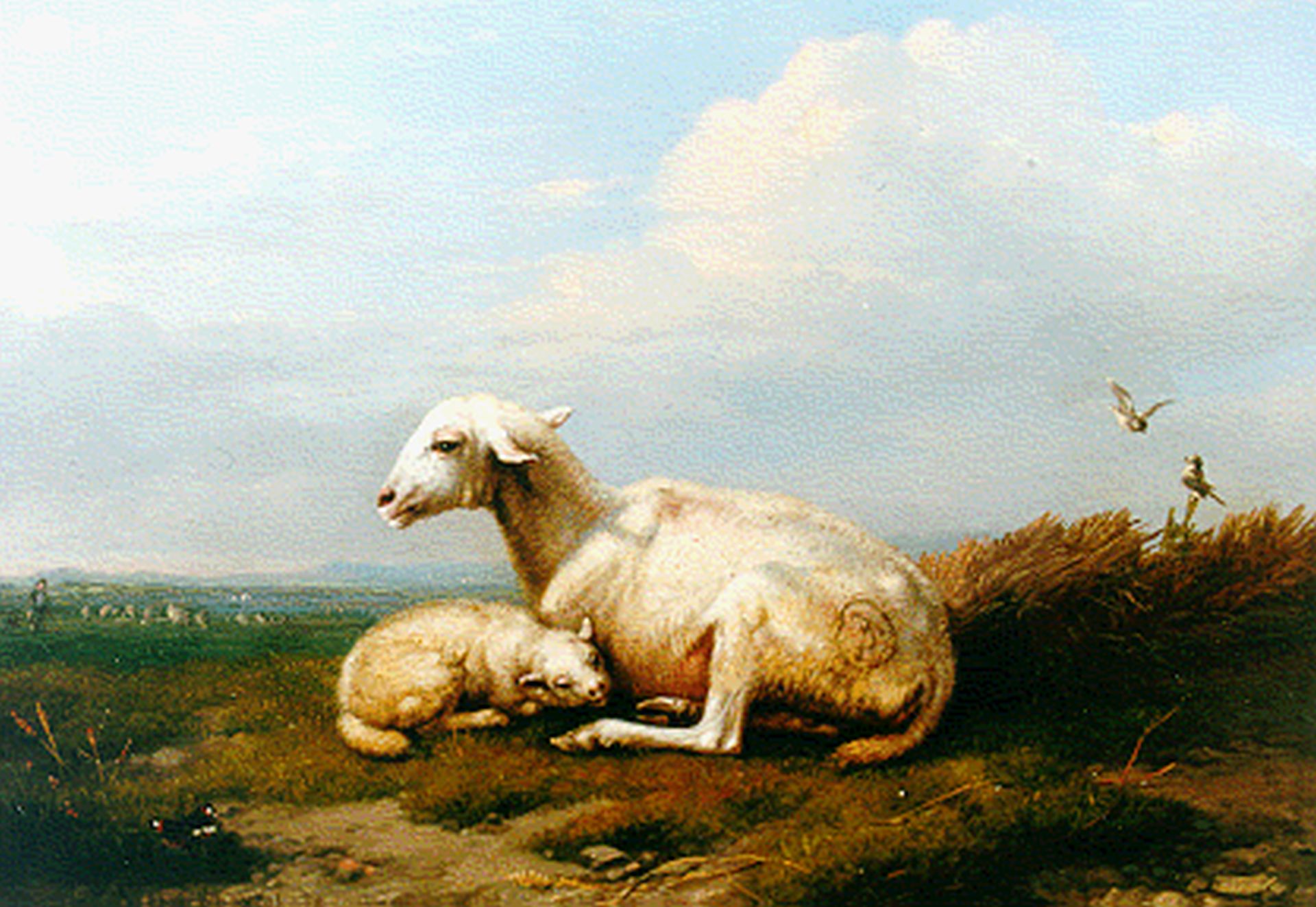 Eugène Verboeckhoven Kunstwerk • Gemälde • zuvor zu verkaufen A sheep and lamb