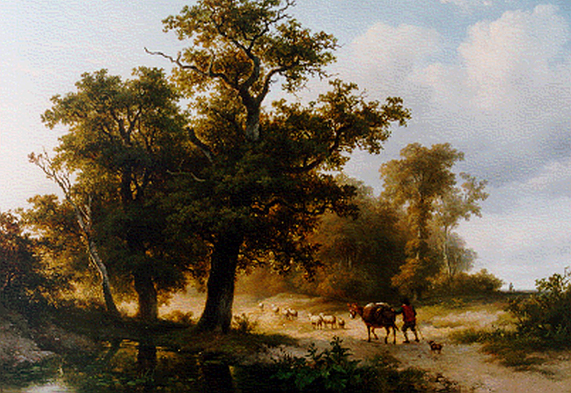 Eugène Verboeckhoven Kunstwerk • Gemälde • zuvor zu verkaufen A shepherd with flock in a wooded landscape