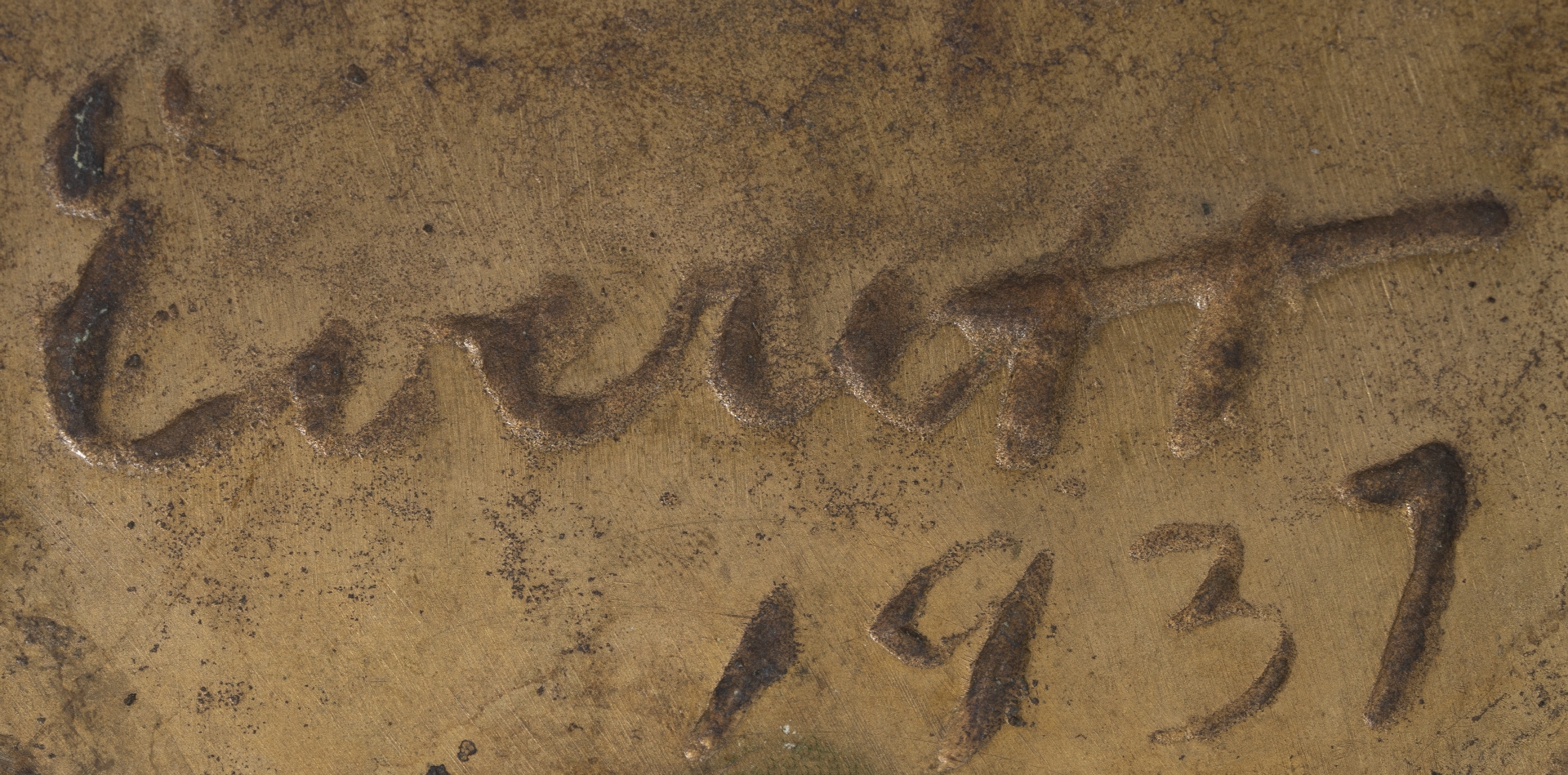 Bronze 9,0 x 20,0 cm, Unterzeichnet auf der Unterseite und datiert 1937