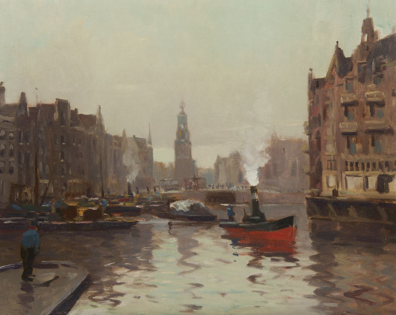 Evert Jan Ligtelijn Kunstwerk • Gemälde • zuvor zu verkaufen Ansicht auf den Muntturm ab der Binnen-Amstel