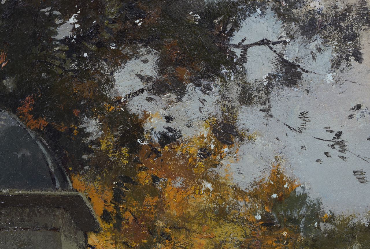 Evert Jan Ligtelijn | Winterliche Dorfansicht mit Zugbrücke, Öl auf Leinwand, 32,2 x 48,6 cm, Unterzeichnet u.r. und zu datieren um 1924