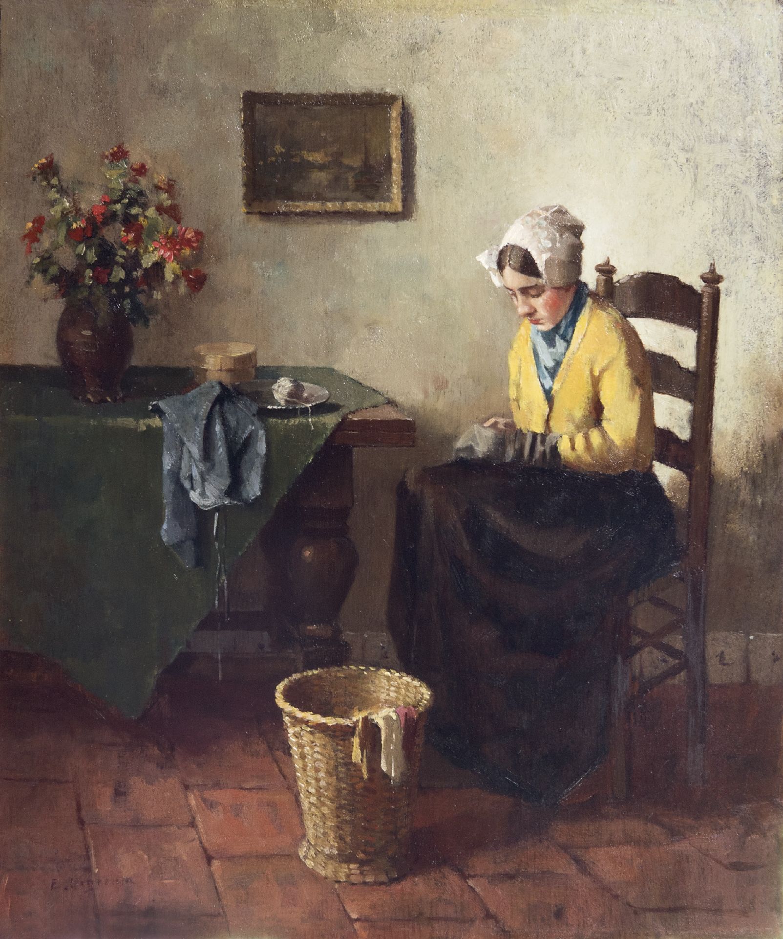 Evert Jan Ligtelijn Kunstwerk • Gemälde • zuvor zu verkaufen Ruhiges Nähstündchen
