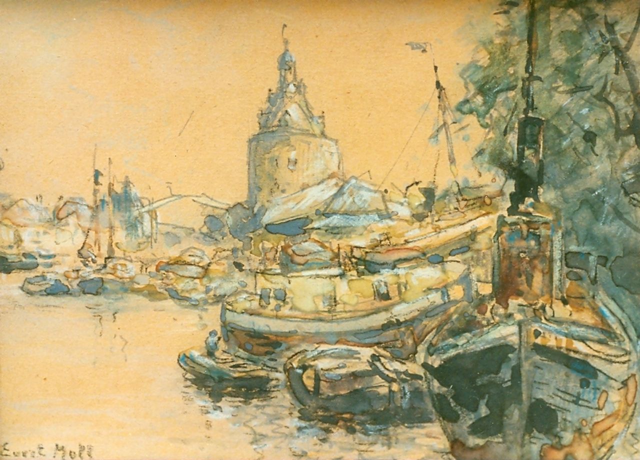 Evert Moll Kunstwerk • Aquarell • Zeichnung • zuvor zu verkaufen A view of the harbour of Enkhuizen