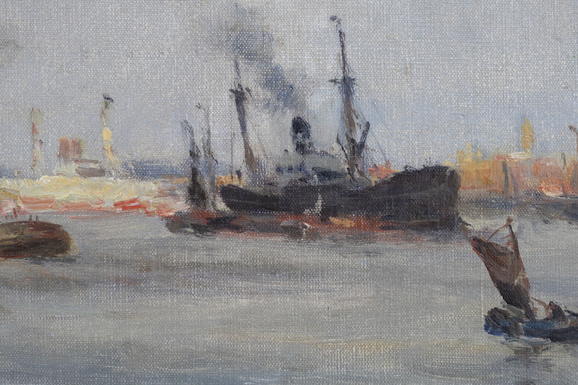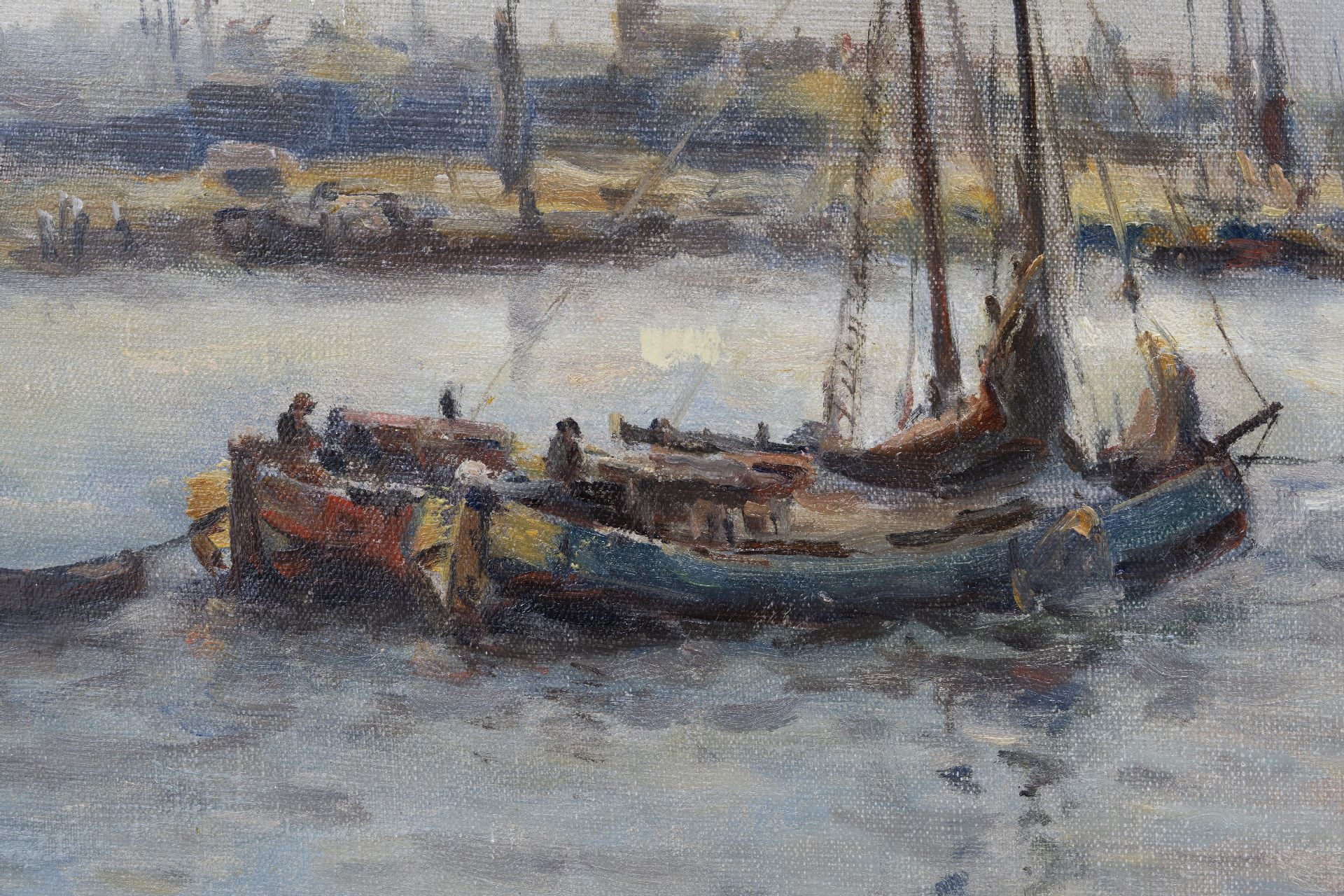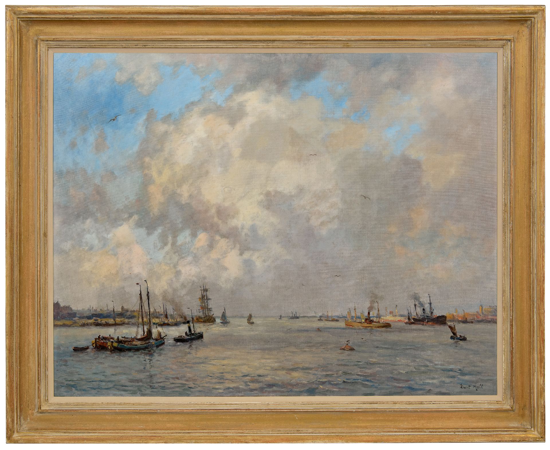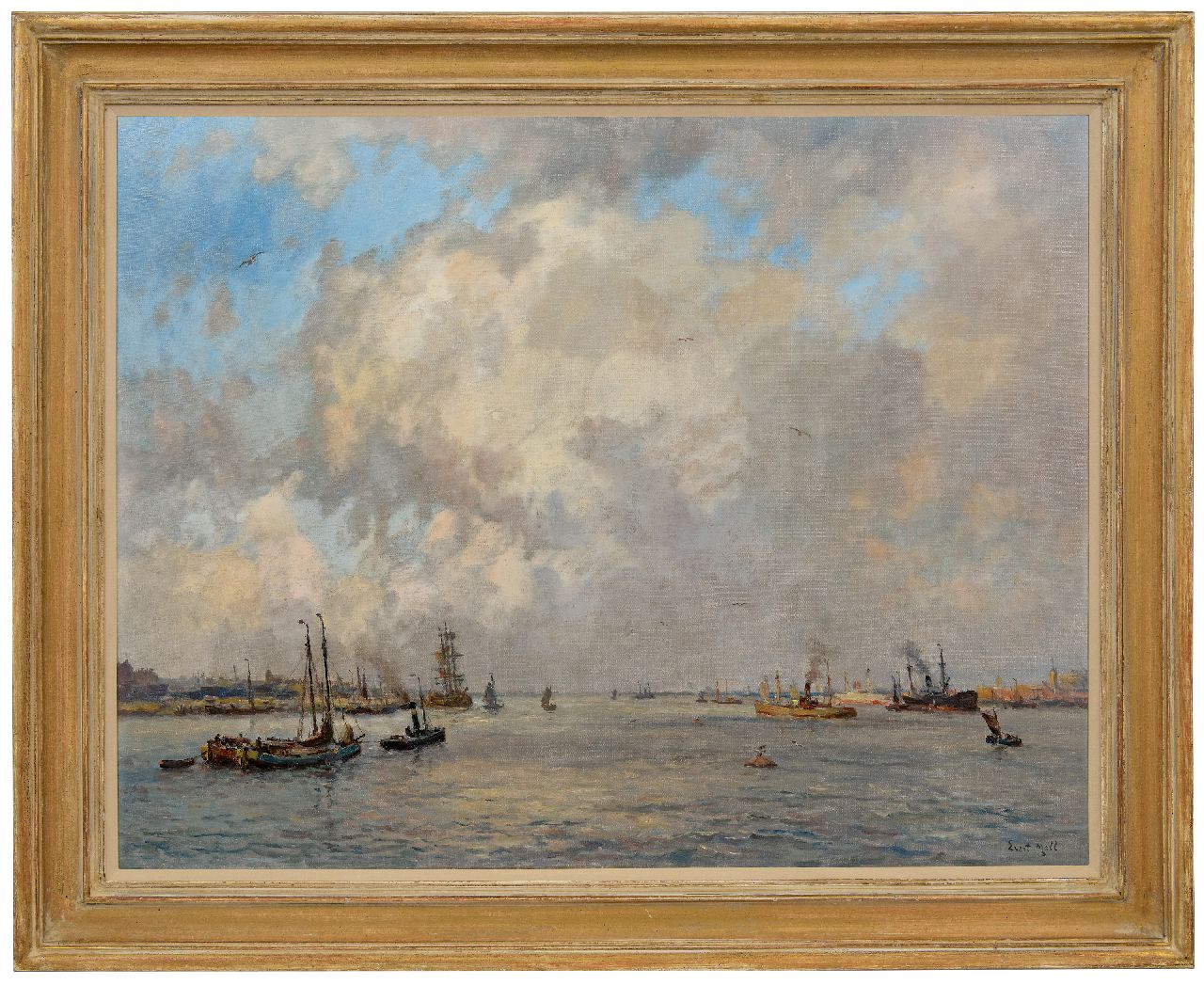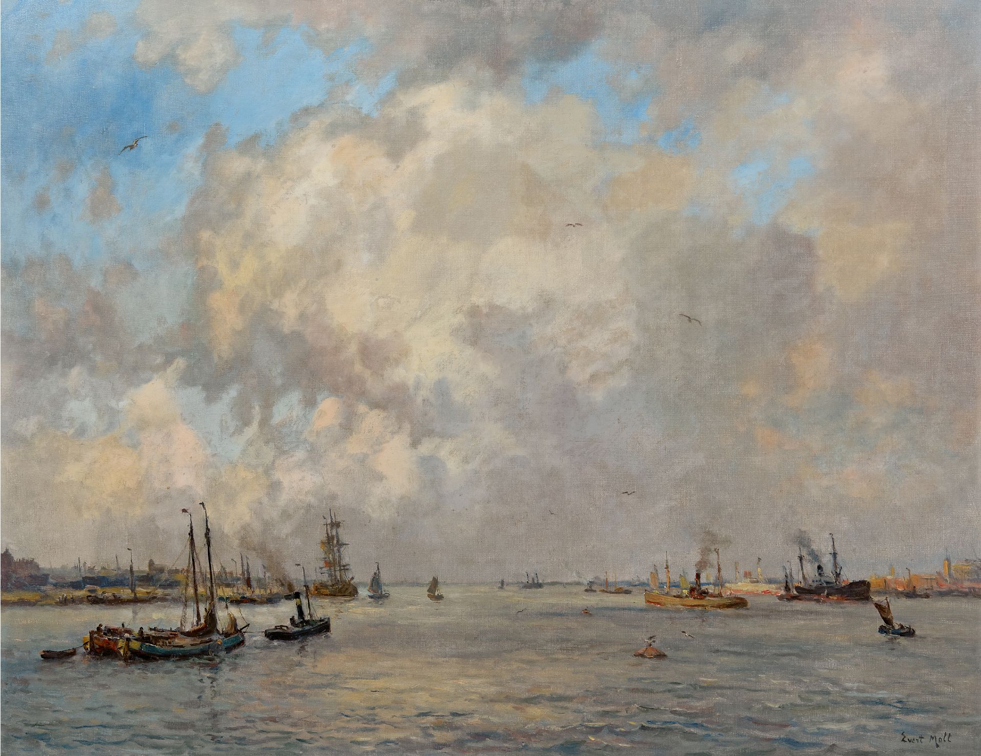 Evert Moll Kunstwerk • Gemälde • zu verkaufen Hafenansicht mit schweren Wolken