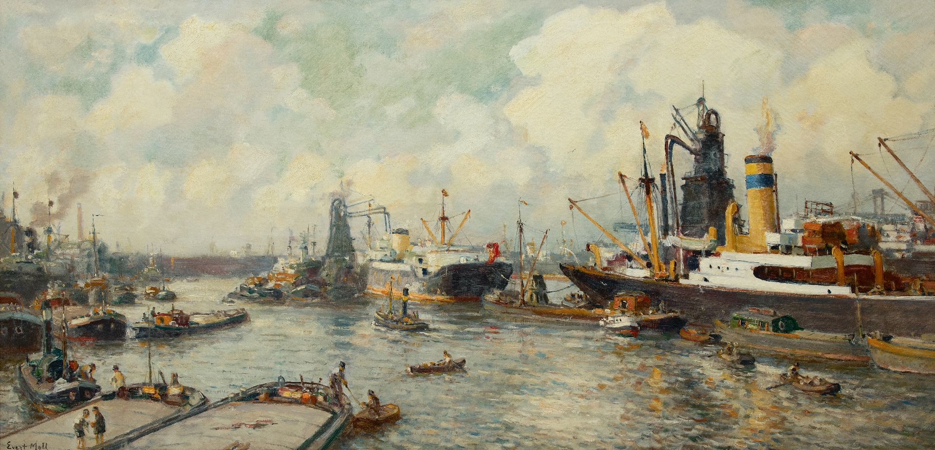 Evert Moll Kunstwerk • Gemälde • zu verkaufen Blick auf den Maashaven, Rotterdam