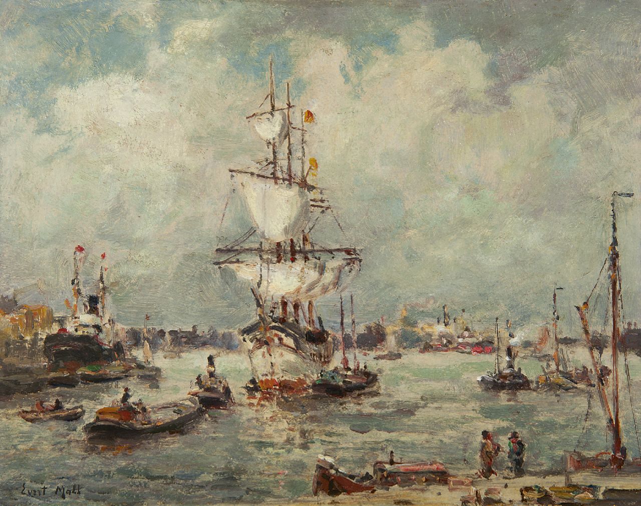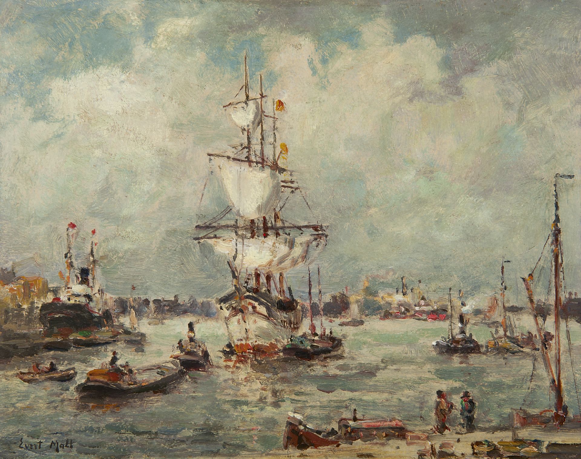 Evert Moll Kunstwerk • Gemälde • zuvor zu verkaufen Dreimaster im Hafen von Rotterdam